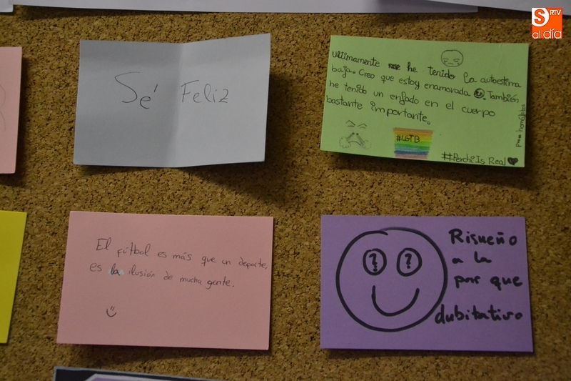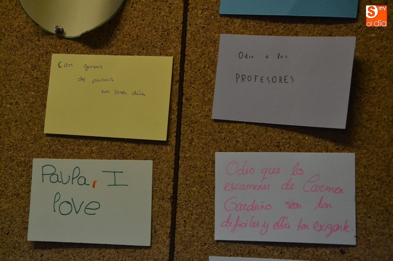 Desde la AMPA se invitó a todos los miembros de la Comunidad Educativa a que depositasen en el mismo, de forma anónima, los mensajes que quisieran. En la jornada del lunes, se procedió a abrir el buzón, colocando todas las cartulinas en un pasillo del IES.