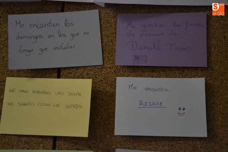 En esas cartulinas se pueden encontrar mensajes de todo tipo, desde aquellos que se quejan por los madrugones o los profesores, hasta los que dicen que les gusta Donald Trump o que están ya pensando en el Carnaval.