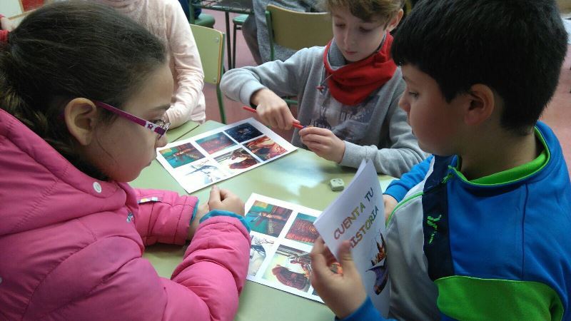 La siguiente sesión, adaptada a los alumnos/as de 1º, 2º y 3º, se ha centrado en la actividad "Cuenta tu historia", para ello y, a partir de un booktrailer y unas imágenes ilustradas, los alumnos se han convertido en los propios escritores de su historia.