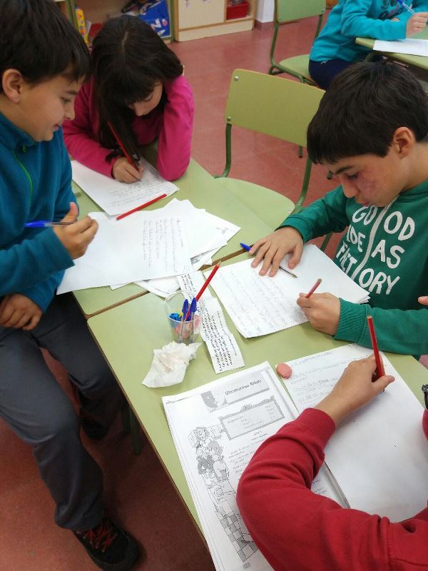 Por último, la sesión dirigida a los alumnos de 4º, 5º y 6º, "Historia sin final", en la que se ha reflexionado sobre la dramatización de cuentos y se les ha explicado las características básicas del teatro, dramatizando unas breves escenas teatrales y escribiendo ellos mismos su propio final.