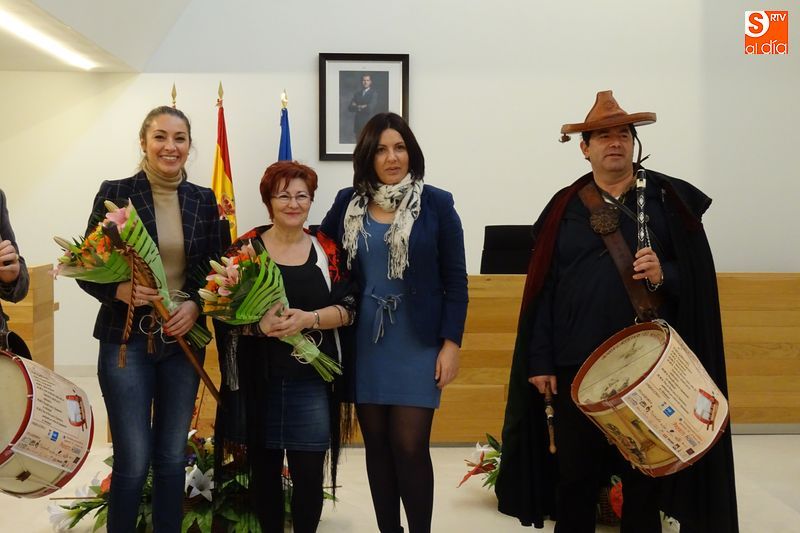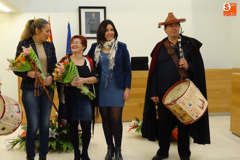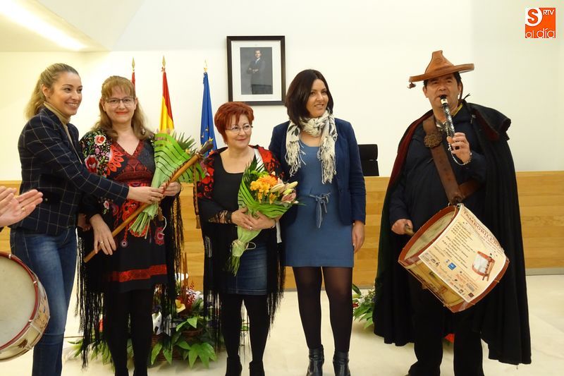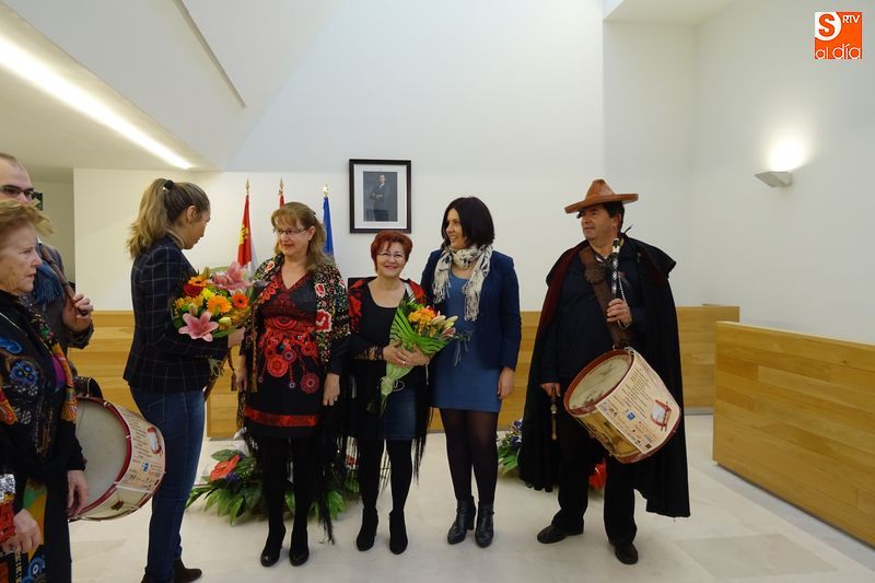 Un año más, las concejalas Marta Labrador y Silvia González han sido las encargadas de recibir a las águedas en el Consistorio. Labrador ha hecho entrega del bastón de mando a la nueva aguedera mayor, cargo que este año ostenta Toñi Nieto, y que el año anterior correspondió a Tere Rodríguez.