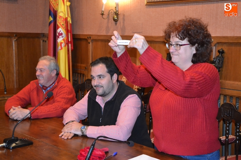 En el acto desarrollado en el salón de plenos, se metieron en un saco los nombres de las 4 peñas, saliendo a escoger el ganador una de las personas que estaba entre el público, que curiosamente sacó justo el nombre de su propia peña.
