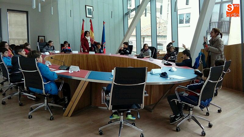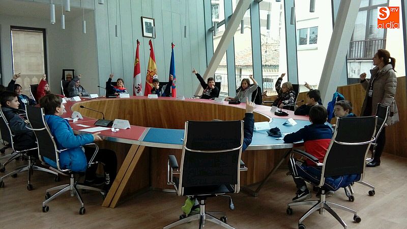 one el Consistorio. Tras acompañar a los escolares en visita guiada por las diferentes partes del edificio, se ha representado una vez más el juego del pleno, en el que cada uno de los escolares ha adoptado un papel en una representación de sesión plenaria, desde miembros del equipo de gobierno, concejales de la oposición, prensa o ciudadanos, para experimentar de primera mano el funcionamiento del gobierno local.