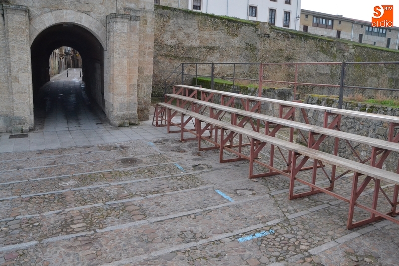 CIUDAD RODRIGO | En la mañana del viernes se montaron las dos gradas que se instalan tradicionalmente en la zona