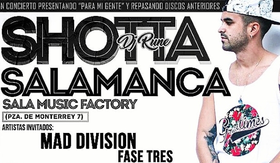 Shotta actuará el viernes 10 de marzo en la Sala Music Factory (situada en la Plaza de Monterrey), donde estarán como artistas invitados Mad Division y la formación mirobrigense Fasetres, que recientemente ha lanzado el segundo videoclip de su carrera.