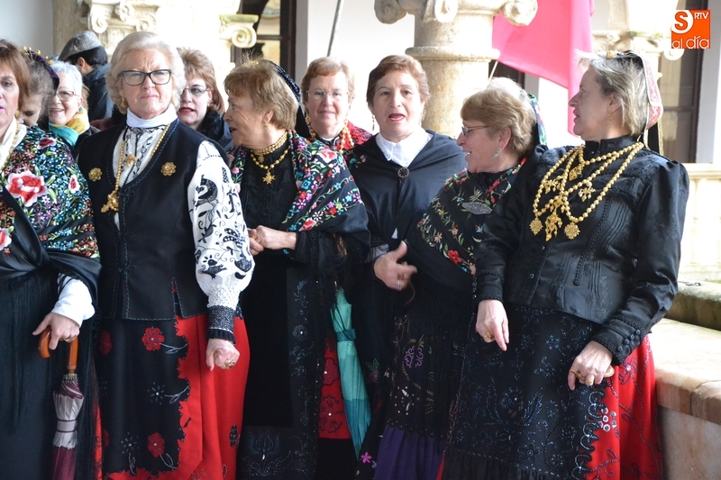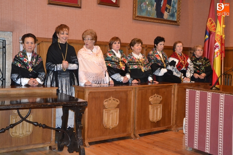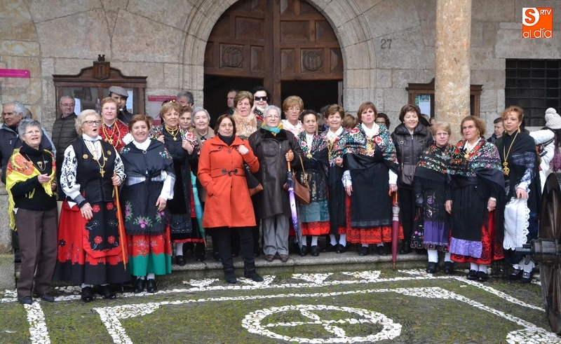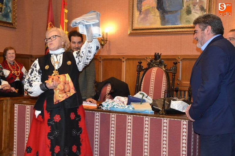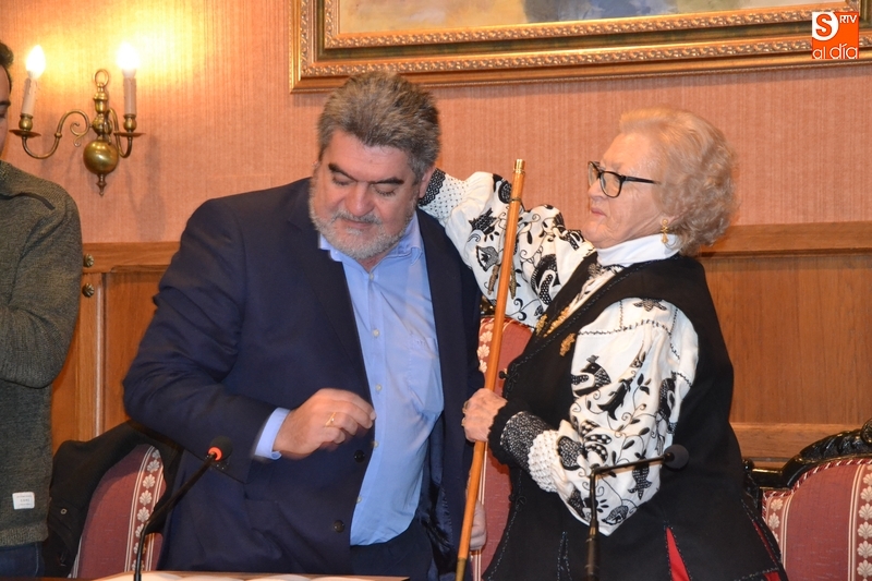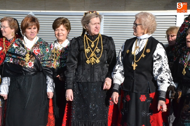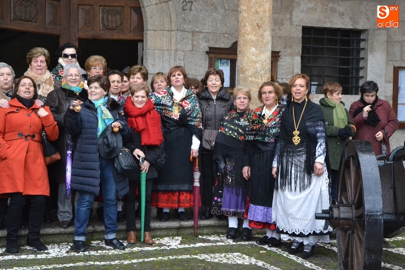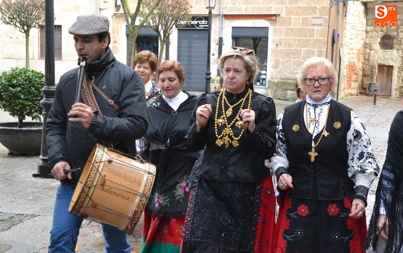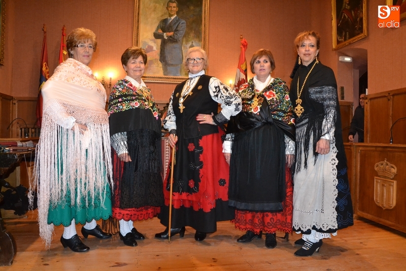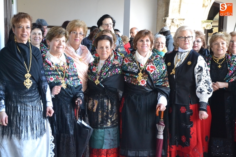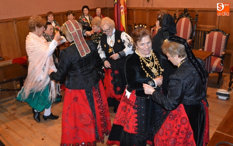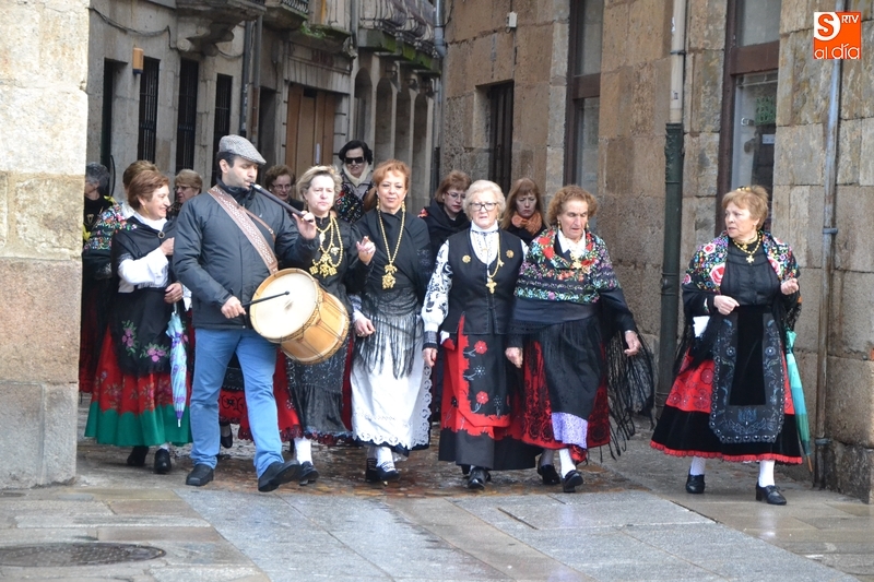 Precisamente, la mañana dominical comenzó con la reunión de unas cuantas de ellas (principalmente las que iban ataviadas con el traje típico charro) junto al Mercado de Abastos, desde donde se dirigieron con la compañía de un tamborilero y mientras lanzaban cohetes hasta la Casa Consistorial. Allí, el alcalde de Ciudad Rodrigo le hizo entrega a Rosario Pérez del bastón de mando, y además, por sorpresa, de un cuadro de recuerdo con motivo de ese 25º aniversario.