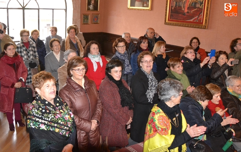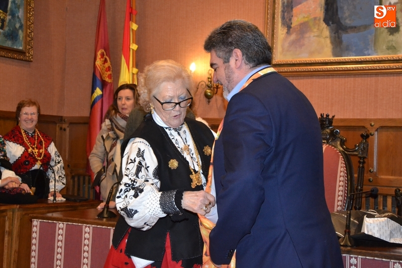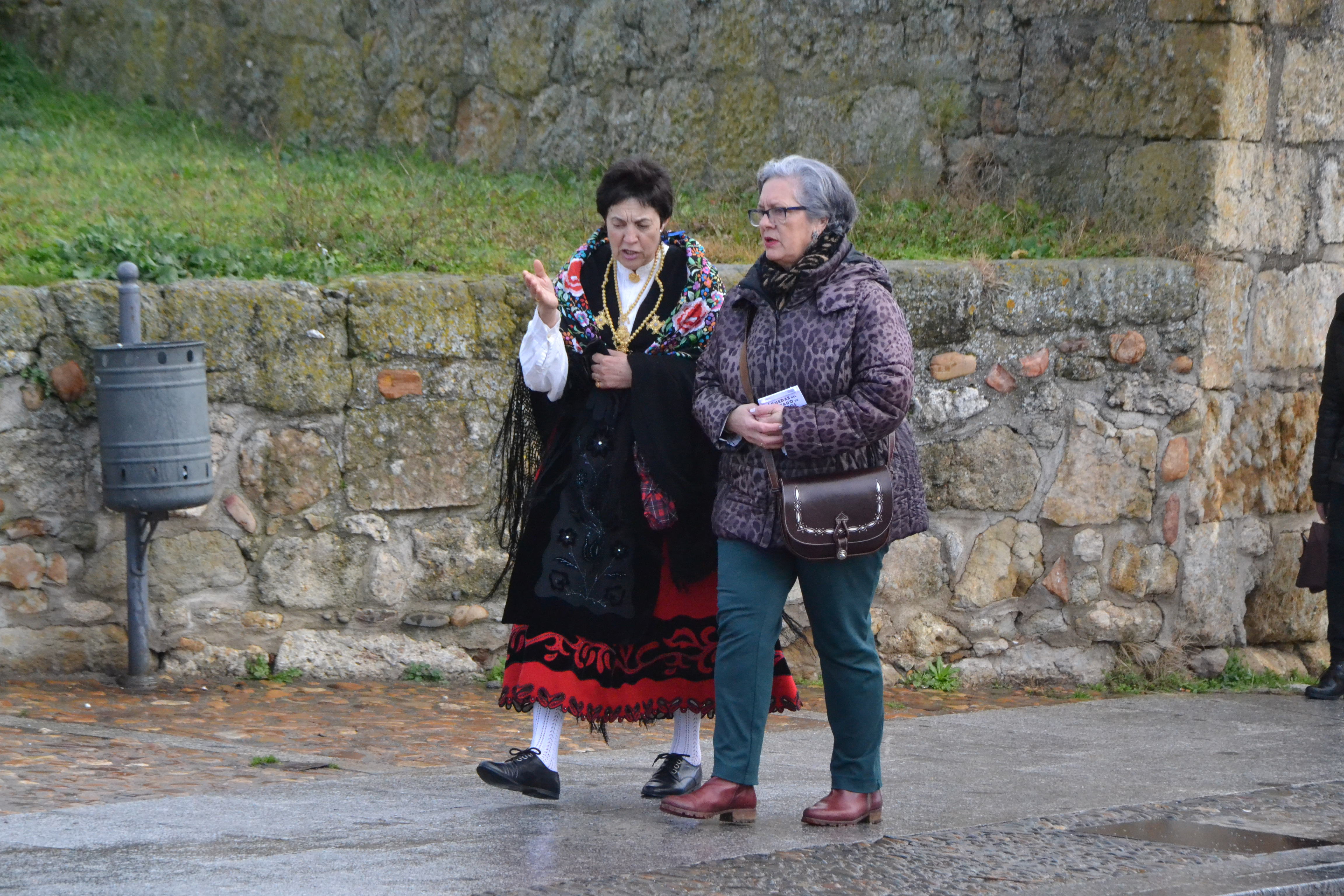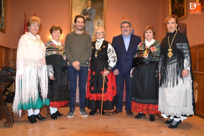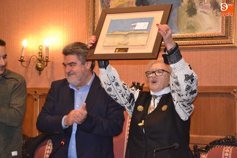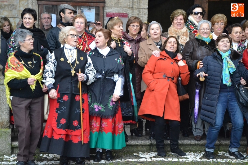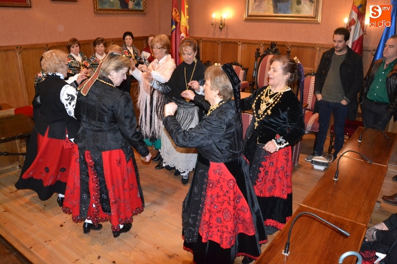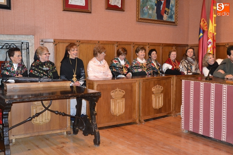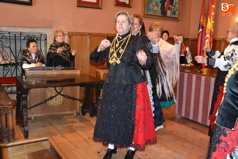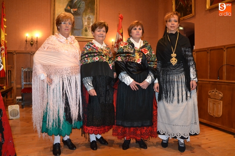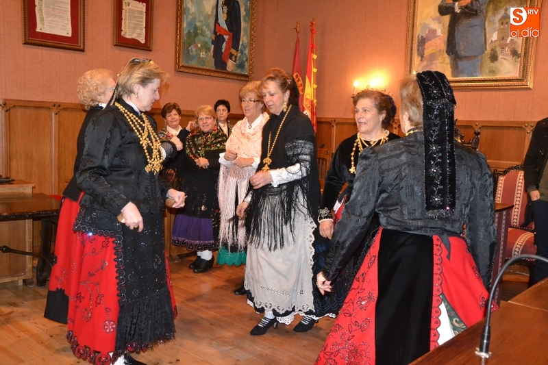 Precisamente, la mañana dominical comenzó con la reunión de unas cuantas de ellas (principalmente las que iban ataviadas con el traje típico charro) junto al Mercado de Abastos, desde donde se dirigieron con la compañía de un tamborilero y mientras lanzaban cohetes hasta la Casa Consistorial. Allí, el alcalde de Ciudad Rodrigo le hizo entrega a Rosario Pérez del bastón de mando, y además, por sorpresa, de un cuadro de recuerdo con motivo de ese 25º aniversario.