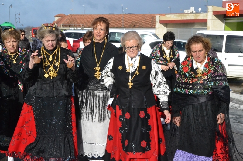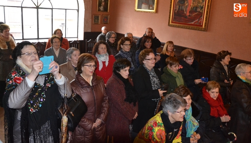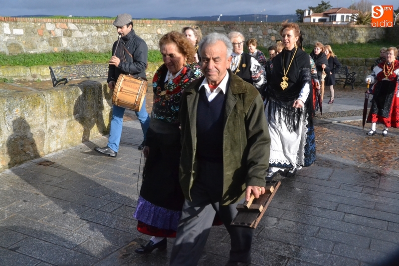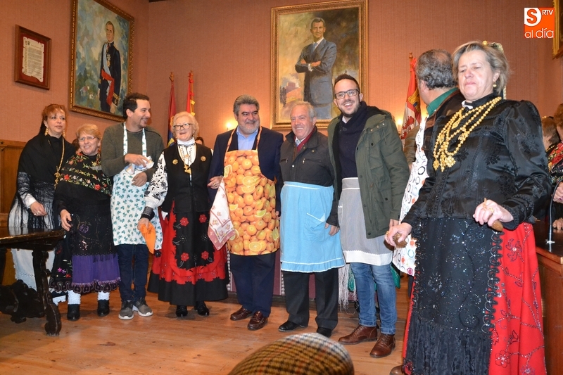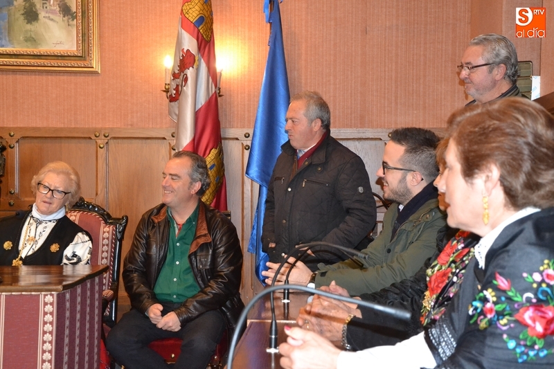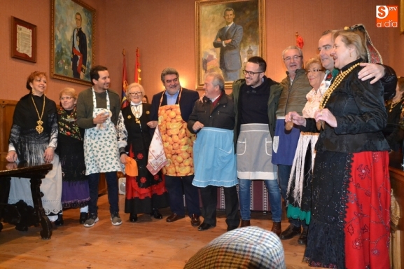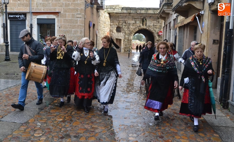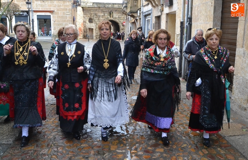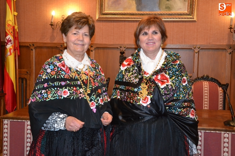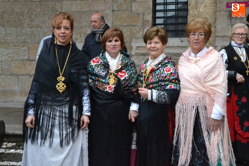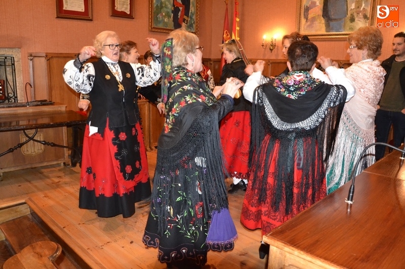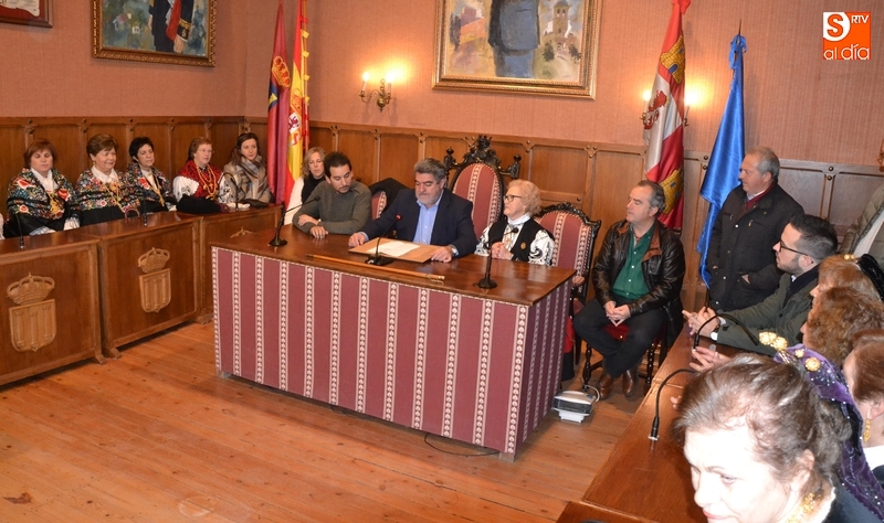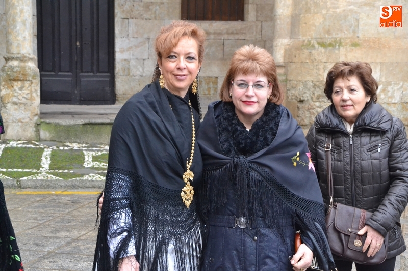 Precisamente, la mañana dominical comenzó con la reunión de unas cuantas de ellas (principalmente las que iban ataviadas con el traje típico charro) junto al Mercado de Abastos, desde donde se dirigieron con la compañía de un tamborilero y mientras lanzaban cohetes hasta la Casa Consistorial. Allí, el alcalde de Ciudad Rodrigo le hizo entrega a Rosario Pérez del bastón de mando, y además, por sorpresa, de un cuadro de recuerdo con motivo de ese 25º aniversario.