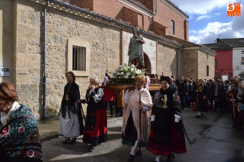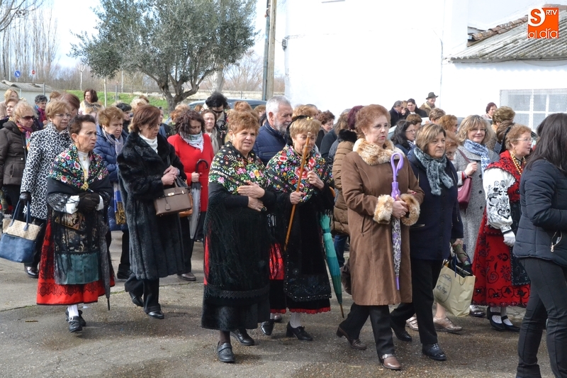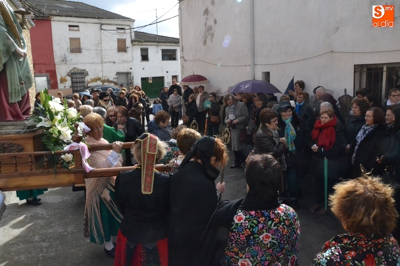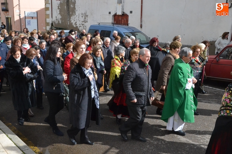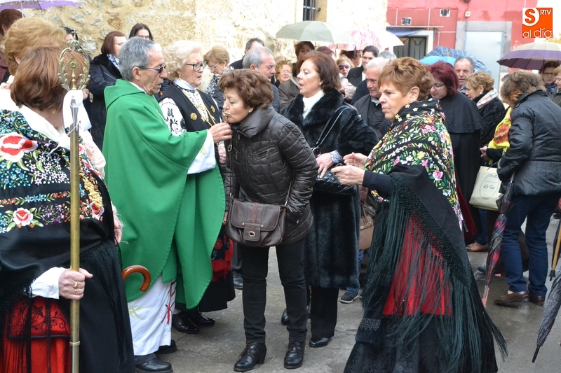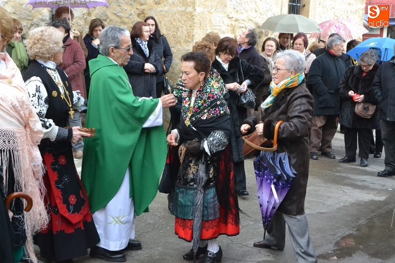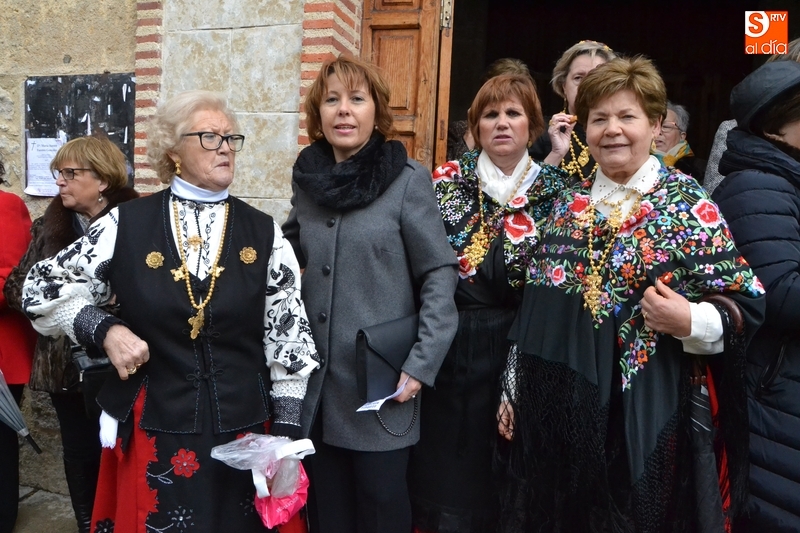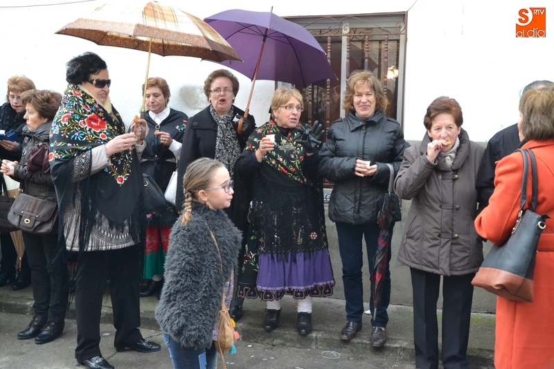 Asimismo, Rosario Pérez también pidió un aplauso para las mayordomas salientes, Carmen y Milagros, y para las entrantes, Tere y Presi, que portaron las varas en los actos religiosos desarrollados en el barrio de El Puente. Con un ojo pendiente del cielo (mientras estuvieron en el Ayuntamiento llovió) las Águedas pusieron rumbo a la Parroquia de Santa Marina, donde el sacerdote Domingo Peinado presidió una eucaristía a la que siguió la habitual procesión por ese barrio.