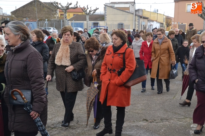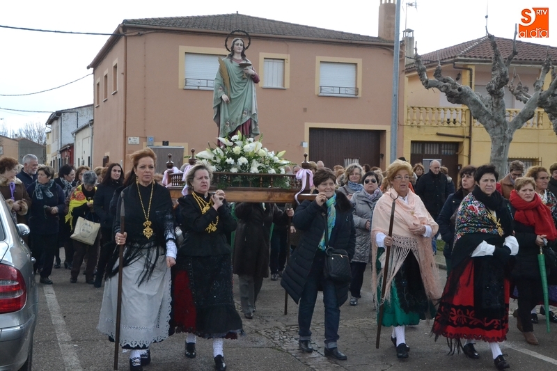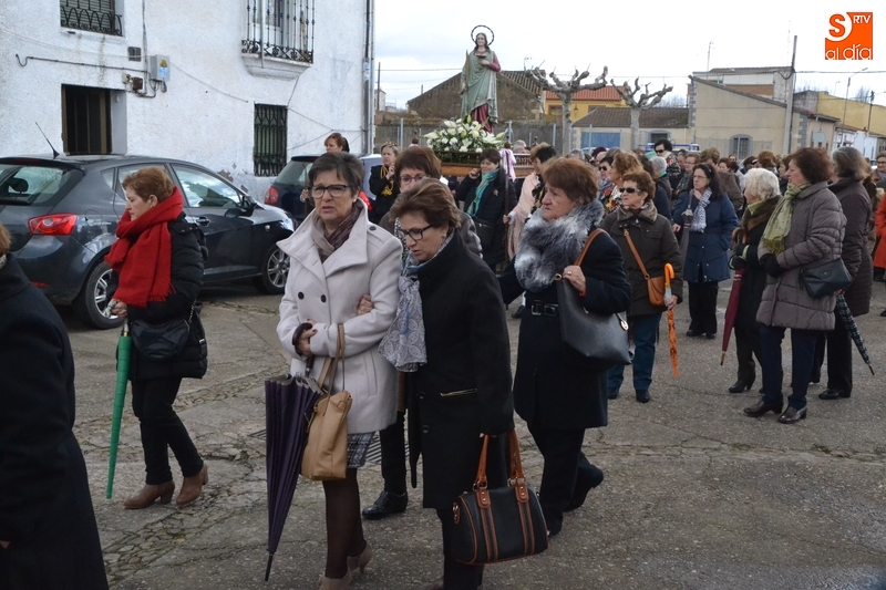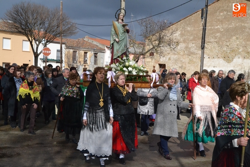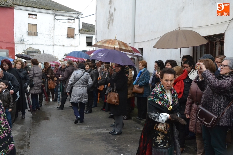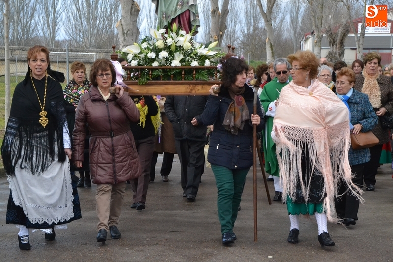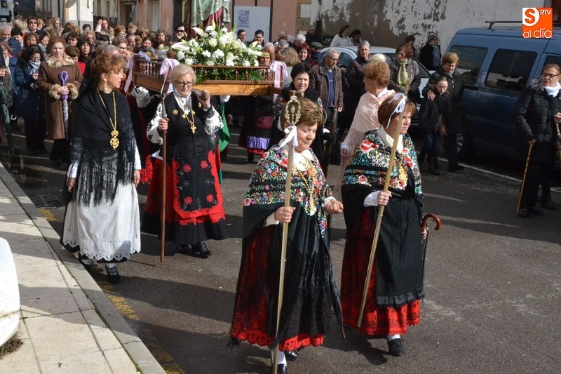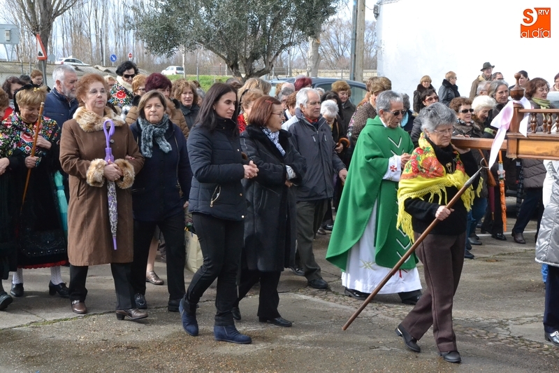 Asimismo, Rosario Pérez también pidió un aplauso para las mayordomas salientes, Carmen y Milagros, y para las entrantes, Tere y Presi, que portaron las varas en los actos religiosos desarrollados en el barrio de El Puente. Con un ojo pendiente del cielo (mientras estuvieron en el Ayuntamiento llovió) las Águedas pusieron rumbo a la Parroquia de Santa Marina, donde el sacerdote Domingo Peinado presidió una eucaristía a la que siguió la habitual procesión por ese barrio.