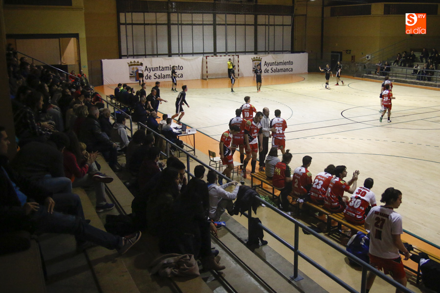 La segunda parte comenzó bien para los salmantinos que comenzaron marcando por medio de Adrián Nebreda, pero un parcial de 0-5 de los visitantes niveló un poco el marcador (17-14, min. 36). Pérdidas de balón y malos lanzamientos fueron la causa de este parcial negativo.