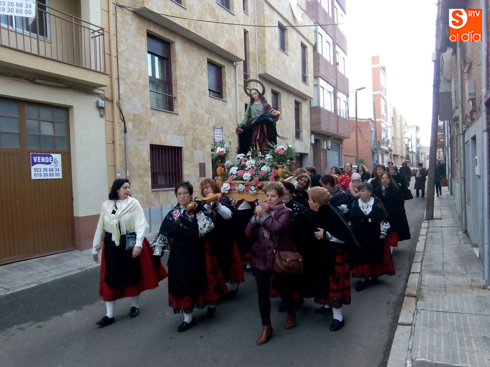 Los actos de mayor sobriedad tenían lugar durante la tarde con la tradicional misa oficiada en la Iglesia Parroquial San Miguel Arcángel. Tras ella, la imagen de Santa Agueda recorría las plazas de la ciudad a hombros de las aguederas locales, recorrido que finalizaba en la Ermita de San Luis, y en el que se sucedieron los bailes y los vítores hacia la patrona.