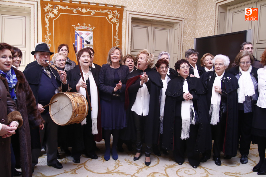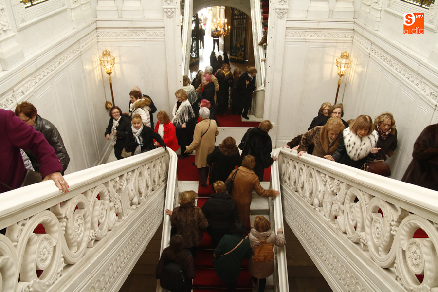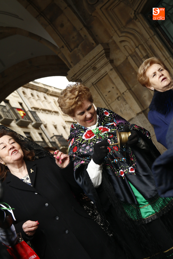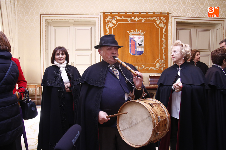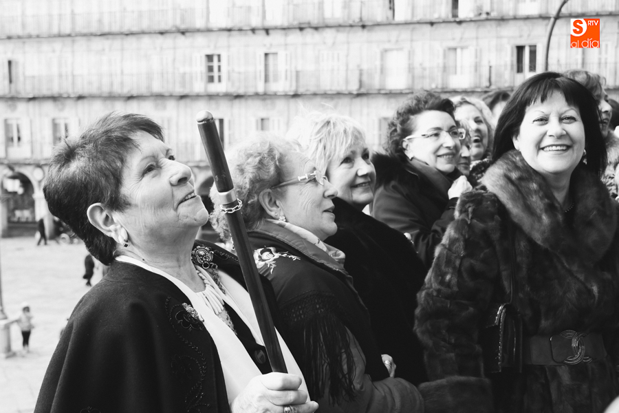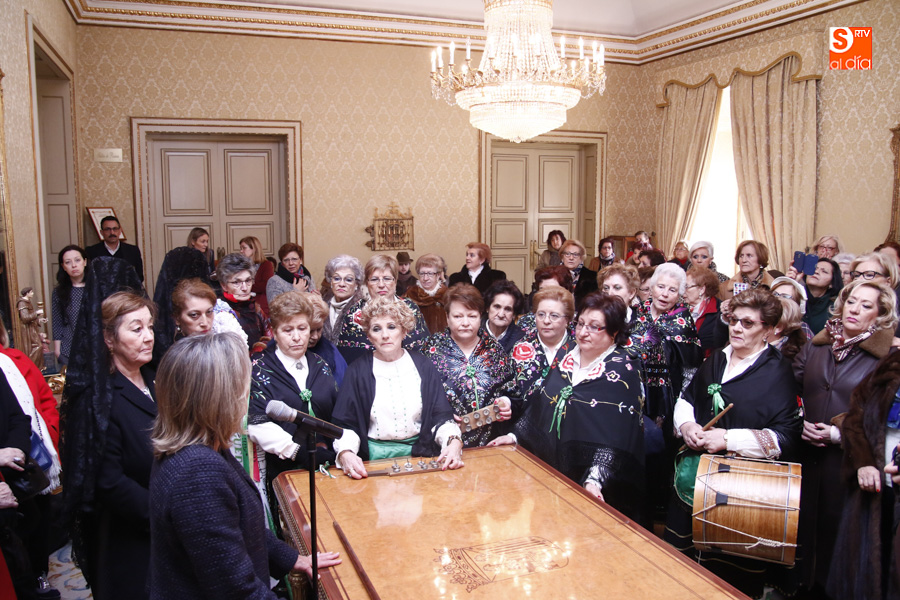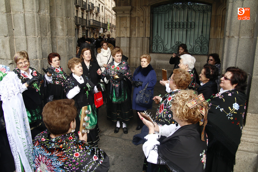 El Ayuntamiento de Salamanca ha abierto este domingo sus puertas para acoger el tradicional acto de entrega del bastón de mando a las águedas. Las mujeres han sido las auténticas protagonistas de este Día de Santa Águeda, celebración a la que se ha sumado Salamanca con la recepción a las asociaciones y grupos de mujeres que celebran la festividad.