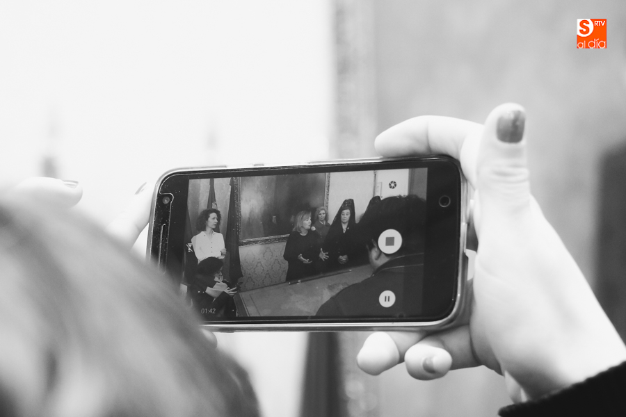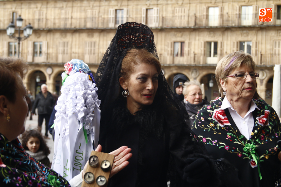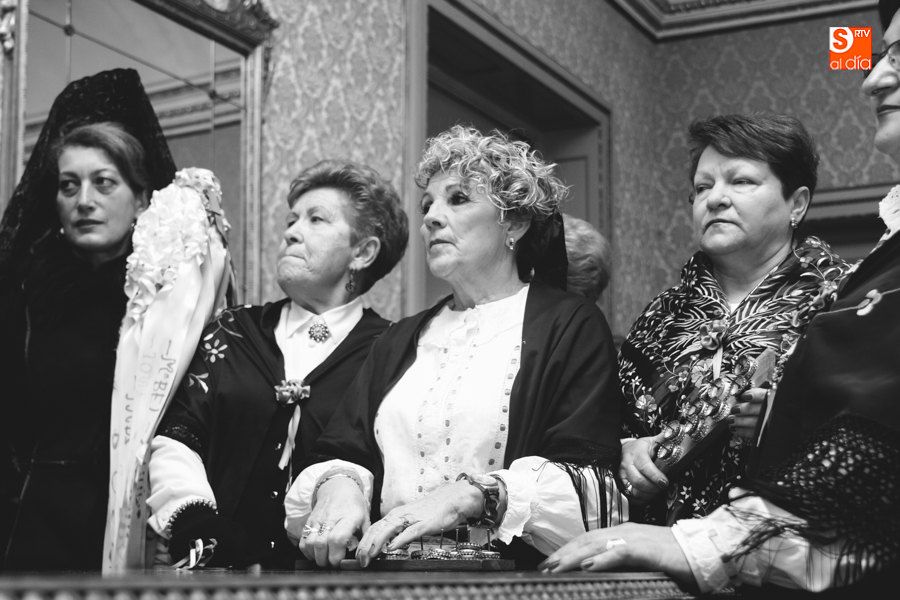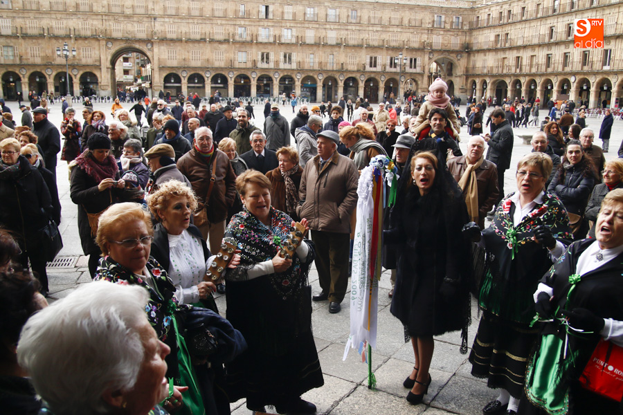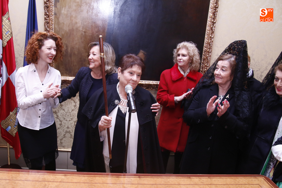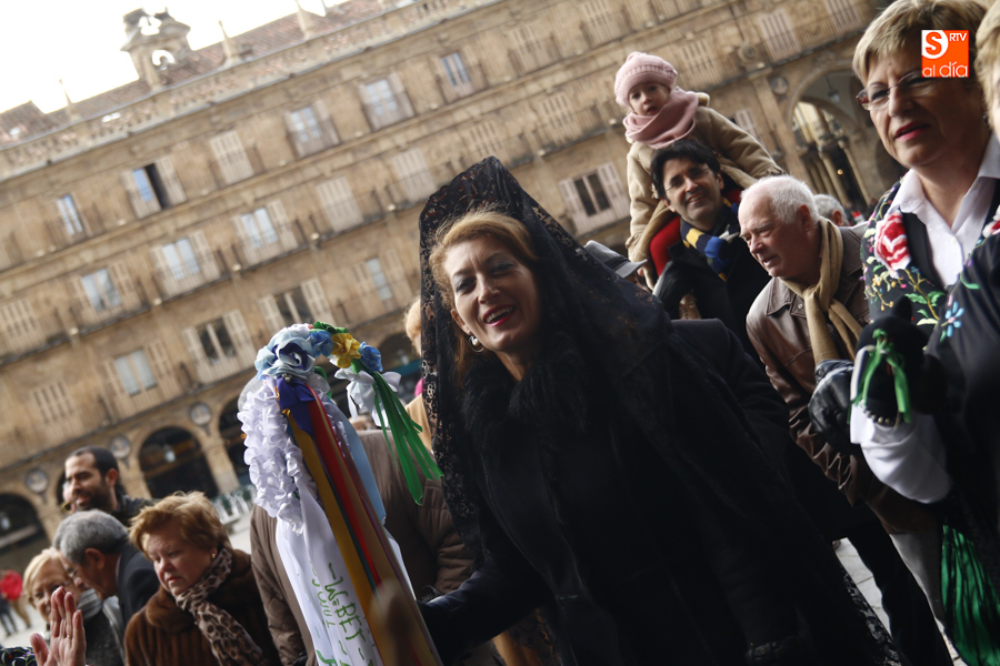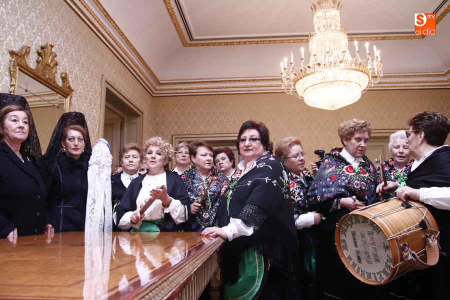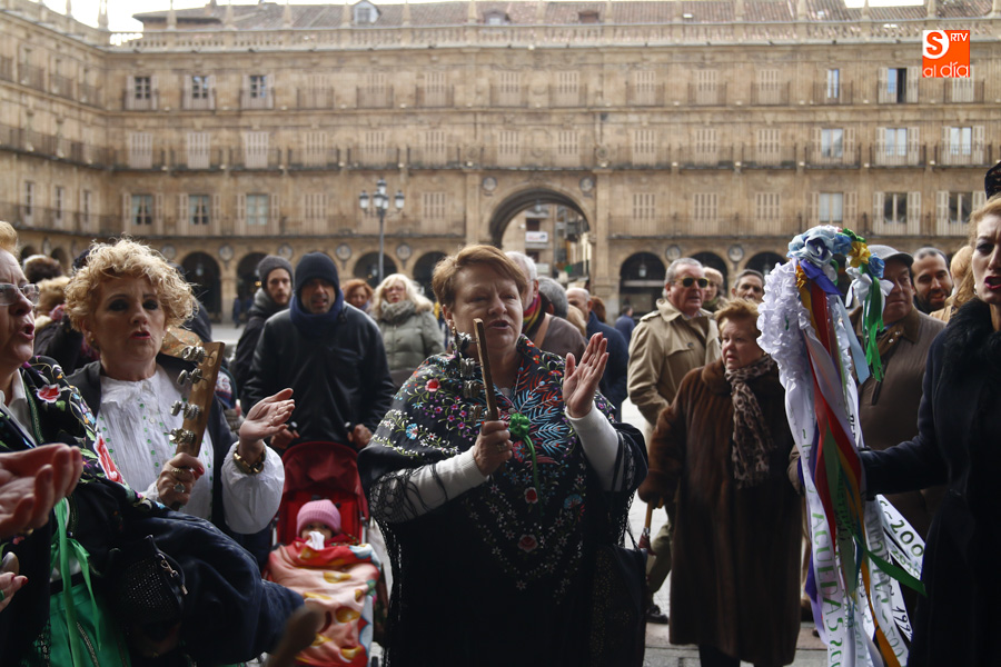 El Ayuntamiento de Salamanca ha abierto este domingo sus puertas para acoger el tradicional acto de entrega del bastón de mando a las águedas. Las mujeres han sido las auténticas protagonistas de este Día de Santa Águeda, celebración a la que se ha sumado Salamanca con la recepción a las asociaciones y grupos de mujeres que celebran la festividad.