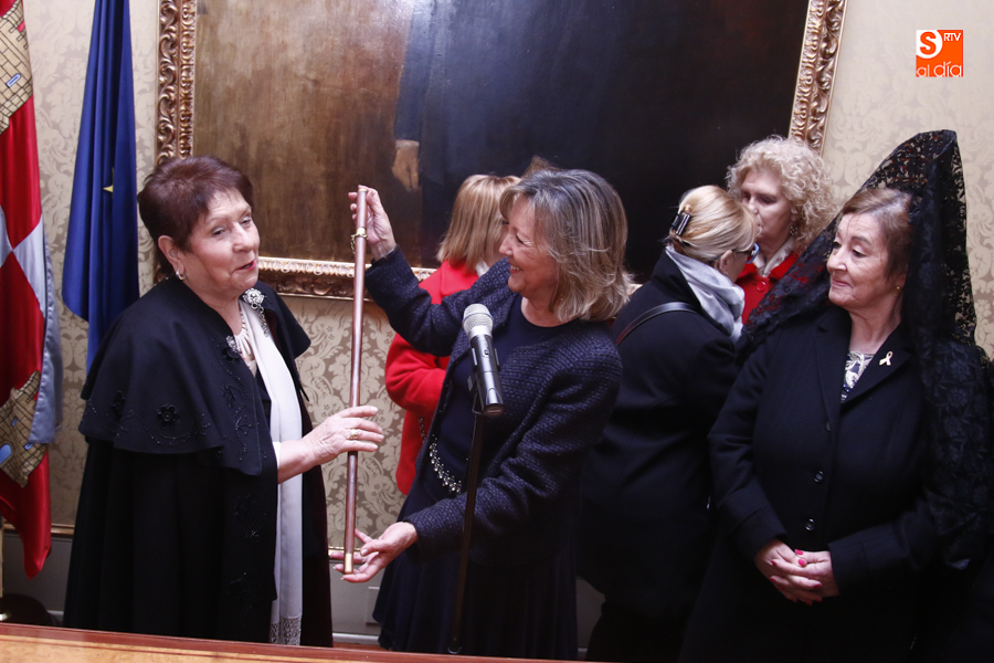 En esta ocasión, la concejala de Familia e Igualdad de Oportunidades, Cristina Klimowitz, ha sido la encargada de recibir a las mujeres y entregar simbólicamente el bastón de mando del Ayuntamiento.