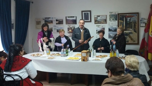 El alcalde, Manuel Domínguez, deseó a las águedas un feliz día y compartió con las mujeres el convite de pastas y licores