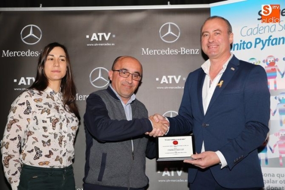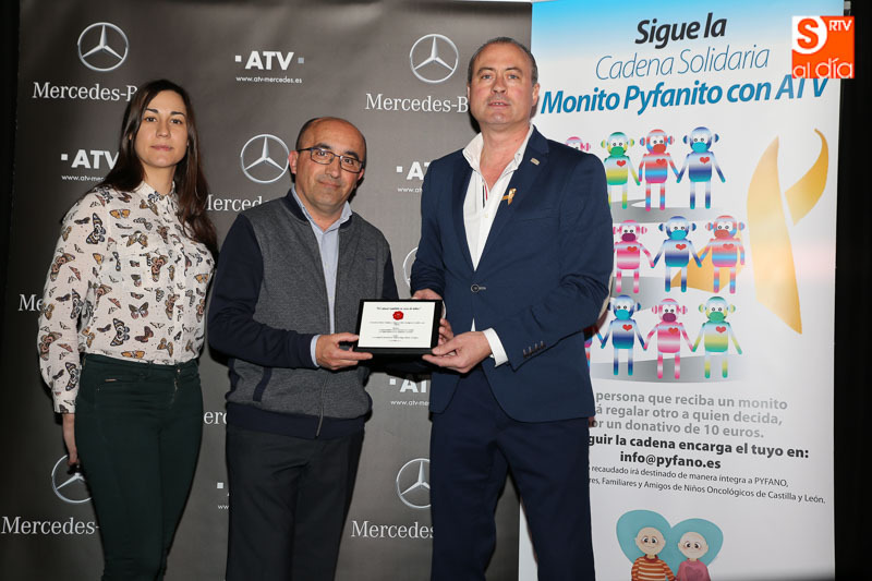 La Asociación de Padres, Familiares y Amigos de Niños Oncológicos de Castilla y León, Pyfano, y la empresa ATV (AgroTracción Vehículos) han iniciado hoy la que espera ser una nueva cadena solidaria de empresas comprometidas con la responsabilidad social corporativa. ATV ha sido la primera de las empresas en sumarse al nuevo programa EAS, Empresas Amigas Solidarias, pionero para la asociación, tal y como explicó Miguel Ángel Vicente, presidente de Pyfano, durante la entrega del sello a ATV, recogido por el gerente Jorge de Cosme, que ha tenido lugar en la Sala Micenas. Hace ya varios meses, ATV se vinculó a Pyfano reforzando la campaña Monito Pyfanito con ATV Yo recibo, yo regalo, y que ha tenido una gran aceptación.