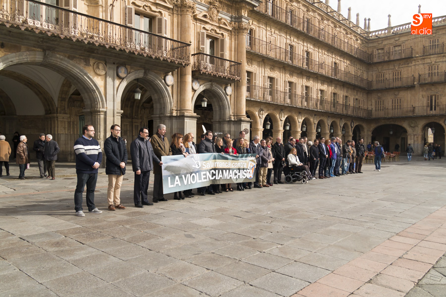 Representantes de los cuatro partidos del Ayuntamiento han participado al mediodía en la Plaza Mayor en una concentración silenciosa en repulsa por la última mujer asesinada por su pareja. En este último caso, el pasado jueves, la víctima mortal ha sido una mujer de 79 años, apuñalada por su marido en la localidad barcelonesa de Súria.