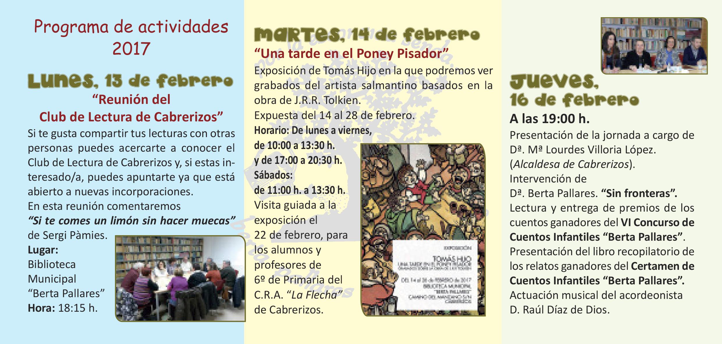CABRERIZOS | Las actividades programadas se desarrollarán del 13 al 18 de febrero y comenzarán con una reunión del nuevo Club de Lectura