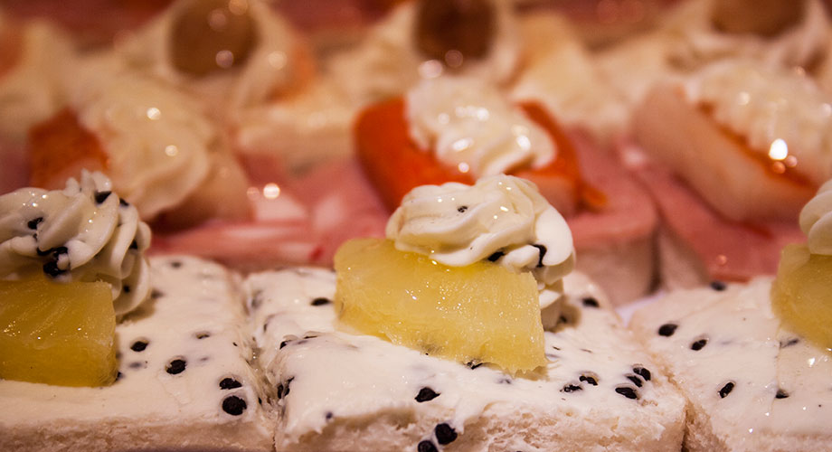 Hornazo dulce, saladitos, canapés (dulces con un toque de champán) y una gran variedad de empanadas.