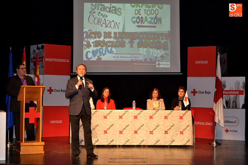 El acto estaba presidido por Jesús Juanes Galindo, presidente provincial de Cruz Roja en Salamanca, quien destacaba que "ni un solo céntimo de euro de los que la sociedad española pone en nuestras manos se va a dedicar a otra cosa que no sean labores humanitarias, eso nunca lo vamos a permitir. Siempre lo utilizamos de manera eficaz y eficiente", y agradecía especialmente el esfuerzo de la sociedad con la institución gracias a la cual "en la provincia de Salamanca, en estos años de crisis, hemos podido emplear 1.400.000 euros en ayudas de primera necesidad. Hemos llegado a muchísima gente y todo gracias a la generosidad de los socios y socias, por eso mi reconocimiento emocionado".