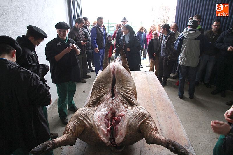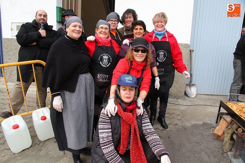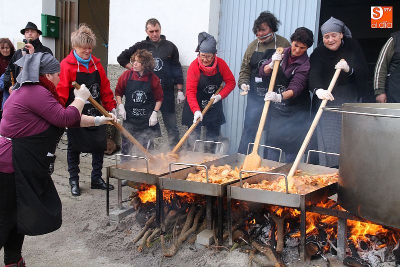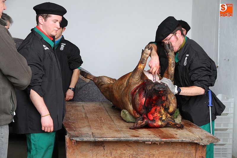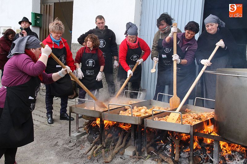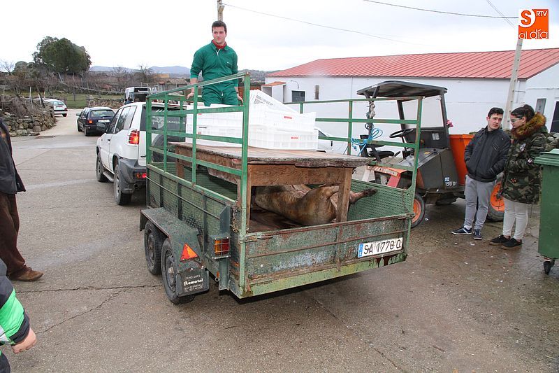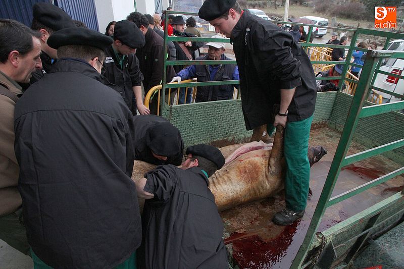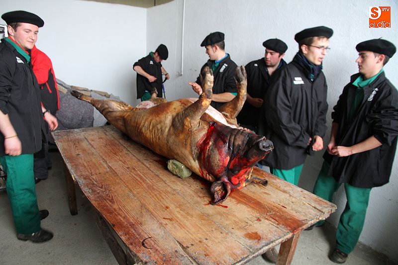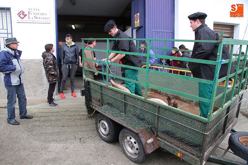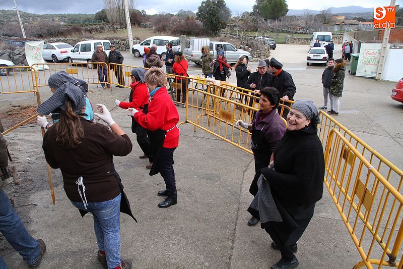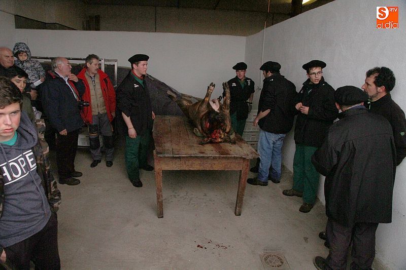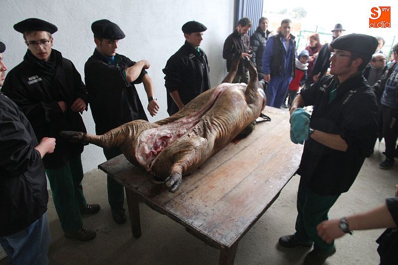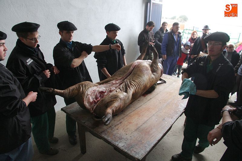 Las actividades comenzaron de madrugada con la preparación de las actividades, en especial de la multitudinaria comida. Un poco antes de las doce del mediodía llegó el cerdo, un gran ejemplar de 208 kilos, ya sacrificado al lugar de la matanza, para explicar a los presentes el proceso de despiece y selección de las partes. A continuación, y siguiendo la costumbre local, se subastaron las mejores entre el público. El aguardiante y las perrunillas no faltaron como degustación para todos los presentes a lo largo de la mañana, así como entretenimiento para los más pequeños en forma de trucos de magia. Ya a la hora de comer se prepararon cientos de raciones de la comida tradicional.