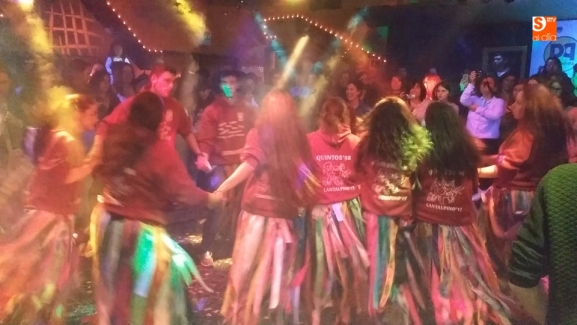 El ruido de los silbatos anunciaba la llegada de los Quintos del 98 a la discoteca Pouppées de Cantalpino, que recorrieron velozmente varias veces agarrados unos a otros de la mano. Uno a uno fueron presentados en la pista de baile por el DJ, mientras eran atentamente observados por un buen número de amigos y familiares, algunos de ellos cámara en mano para registrar el momento.