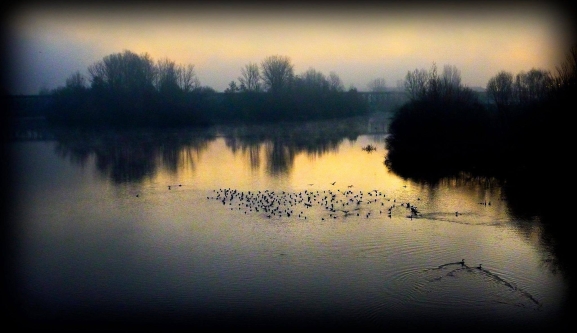 Amanecer con bruma en el río Tormes desde el arroyo del Zurguén