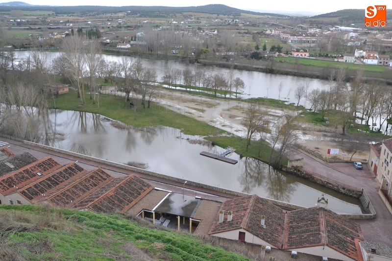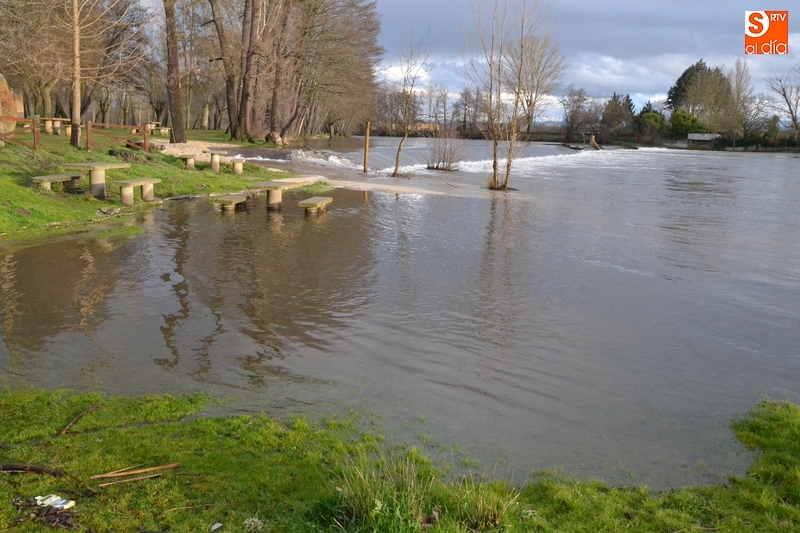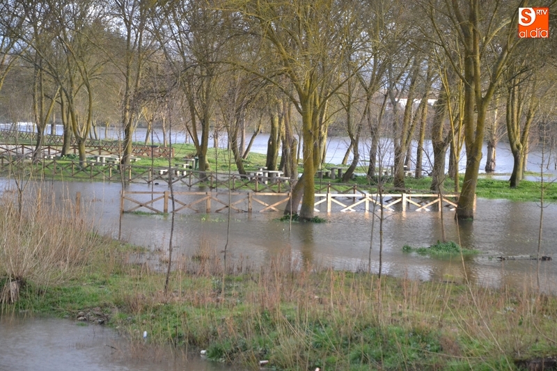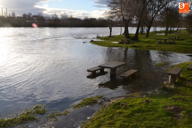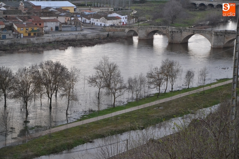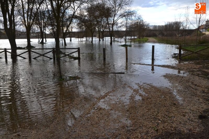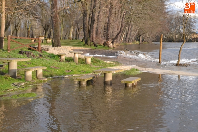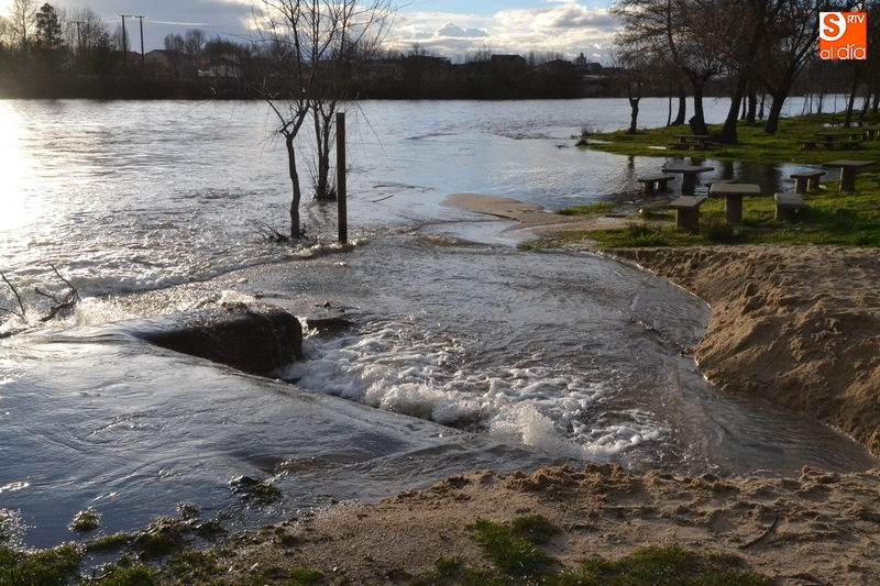 El río Águeda a su paso por Ciudad Rodrigo experimentó durante la jornada del lunes una importante crecida, como se podía comprobar fácilmente al observar el río por ejemplo desde la Puerta de Santiago, y por supuesto, al pasear por su entorno. Como se puede ver en las imágenes, el agua llegó a cubrir parte de los dos parkings de La Pesquera, alcanzando también parte del camino que une el segundo parking con el Puente Mayor.