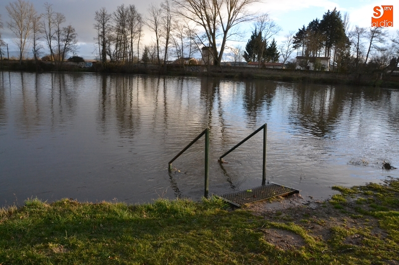 Esta crecida del caudal río abajo hizo que se redujera el volumen de agua desembalsada por la presa de Irueña. Si últimamente venía desalojando agua a un ritmo de 5 metros cúbicos por segundo, a primera hora de la mañana del lunes (entre 8.00 y 9.00 horas) bajó a algo menos de la mitad. Unido a las lluvias caídas, el porcentaje de agua acumulada en Irueña aumentó en 24 horas del 41% al 48%.