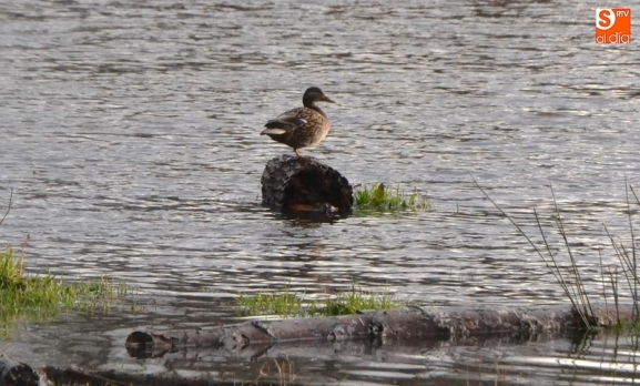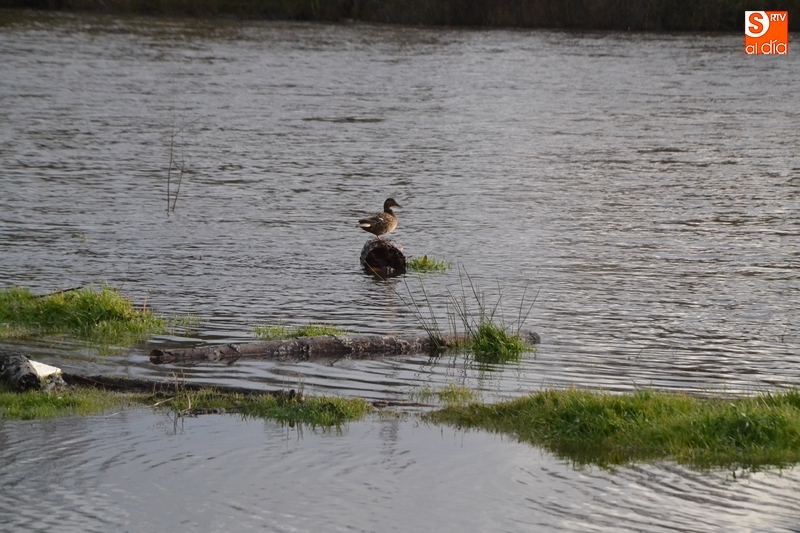 La crecida en la jornada del lunes del Águeda a su paso por Ciudad Rodrigo nos dejó las curiosas imágenes que ilustran esta información, con una ánade real contemplando el horizonte mientras estaba subida a un pequeño tronco varado en una orilla del río en las inmediaciones de La Pesquera.