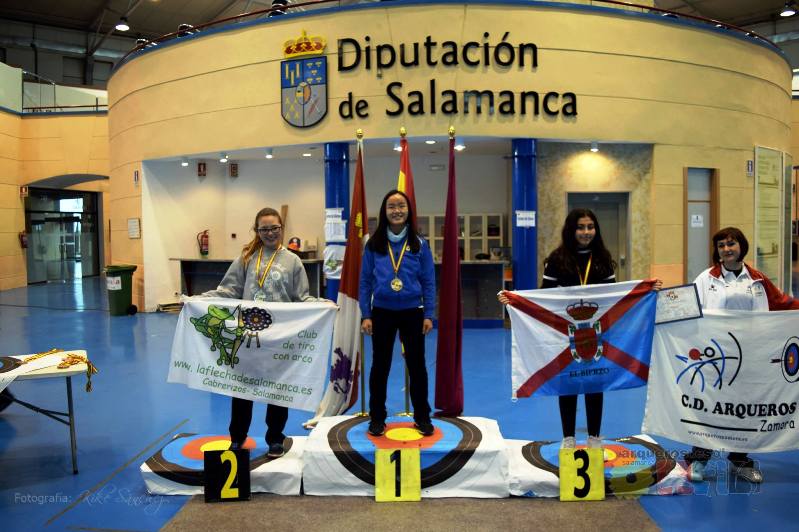 En recurvo alevín mujer, Carla Várez Borja finalizó 7ª con 471 puntos. Y en recurvo ardilla mujer, la sonriente Nayra Arjona García consiguió el Oro con 167 puntos tras una emocionante lucha.