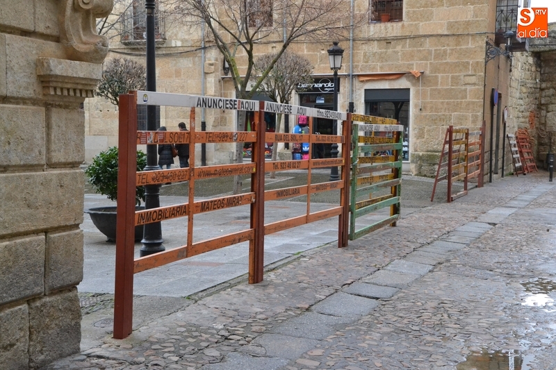 Dentro del proceso de colocación de agujas que están llevando a cabo durante las últimas semanas los operarios del Ayuntamiento de Ciudad Rodrigo encargados de esta tarea, en la mañana del lunes fue turno para colocar, entre otros, los alares situados a ras de suelo en la zona del Registro.