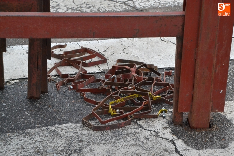 Continuando con el proceso de colocación de las agujas por todo el recorrido de los encierros, en la mañana del martes se procedió a montar las situadas en el centro de la calle Madrid, así como las que separan esta vía de la Plazuela del Conde, y de las calles con las que confluye (Campofrío, Cuatro Calles y Cadimus).