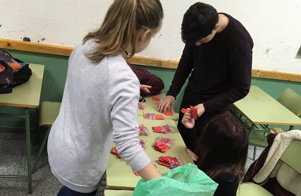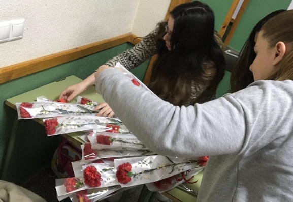 De este modo, durante los días previos estuvieron recogiendo en los recreos peticiones de envío de claveles ?así como de piruletas y tarjetas- tanto a alumnos como a profesores y conserjes. En la mañana del martes, los alumnos encargados de la iniciativa estuvieron preparando todos los regalos antes de proceder a lo largo de la mañana a su reparto.