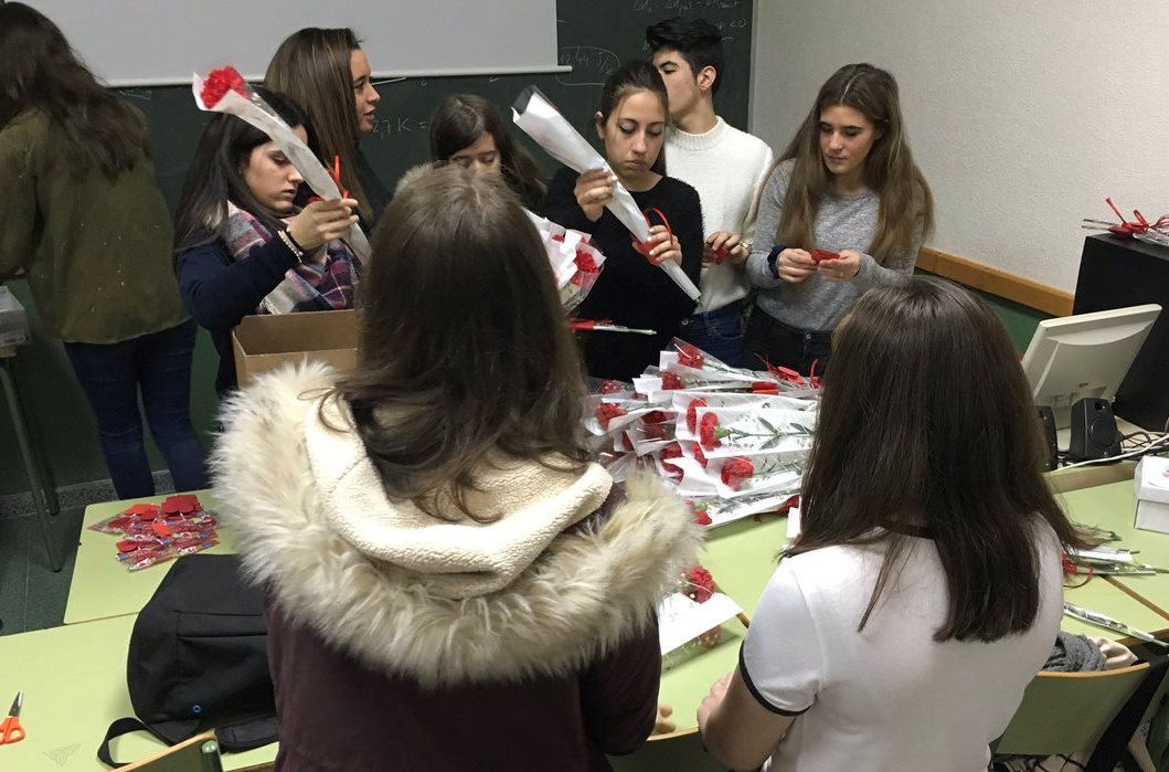 El IES Tierra se llena de claveles en San Valentín para financiar un viaje a Londres