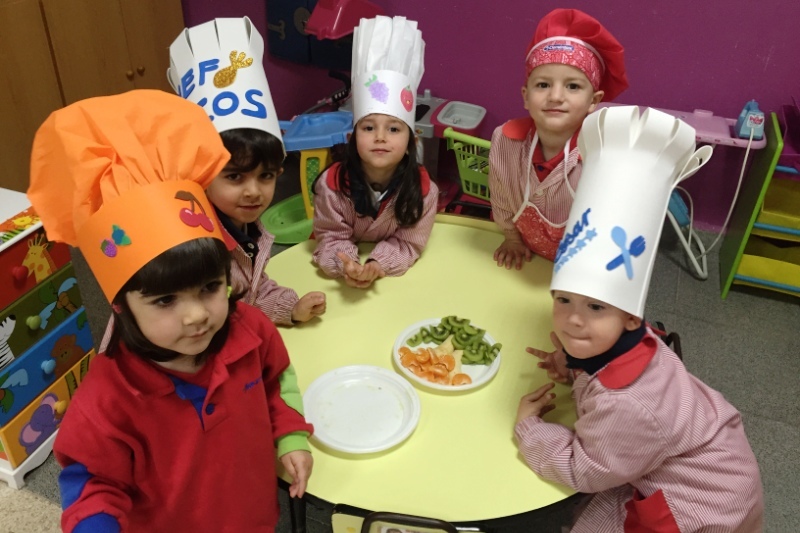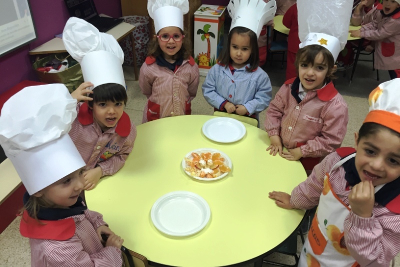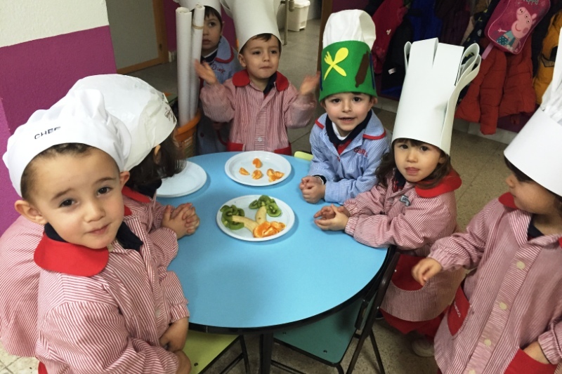 Los alumnos de la clase de 3 años del colegio Trinitarios han realizado este martes un taller de cocina donde han preparado deliciosos y divertidos platos a base de fruta fresca. Una actividad en el que han demostrado sus conocimientos y habilidades, además de inculcarle lo buena que es esta alimentación para su desarrollo infantil.