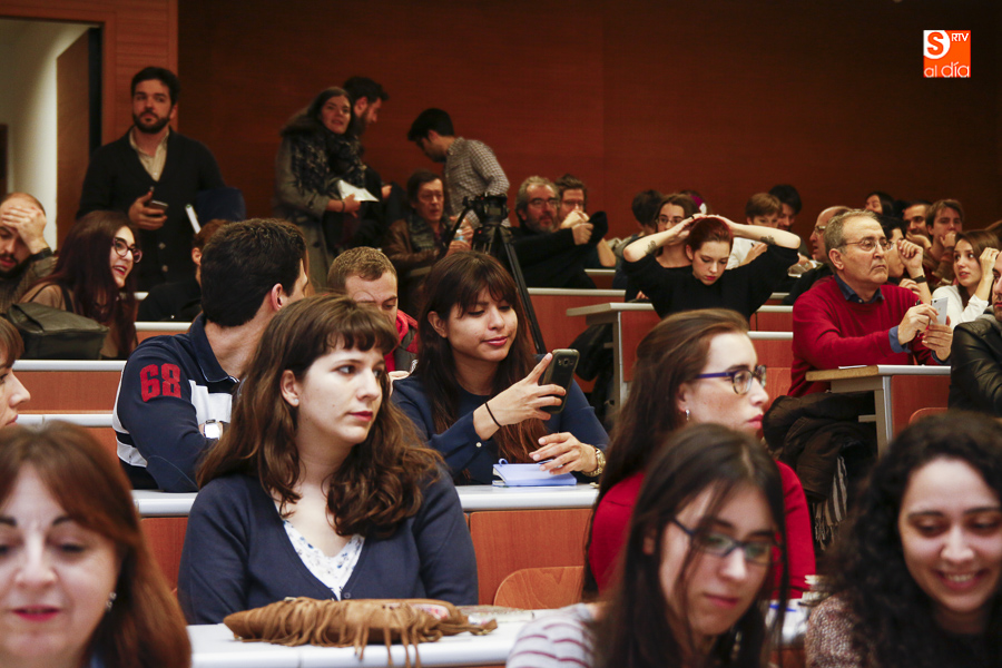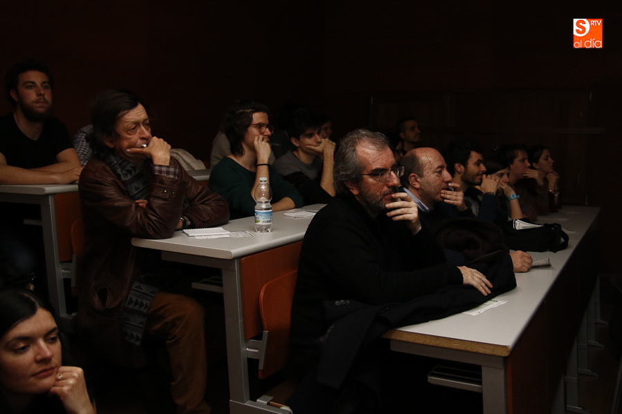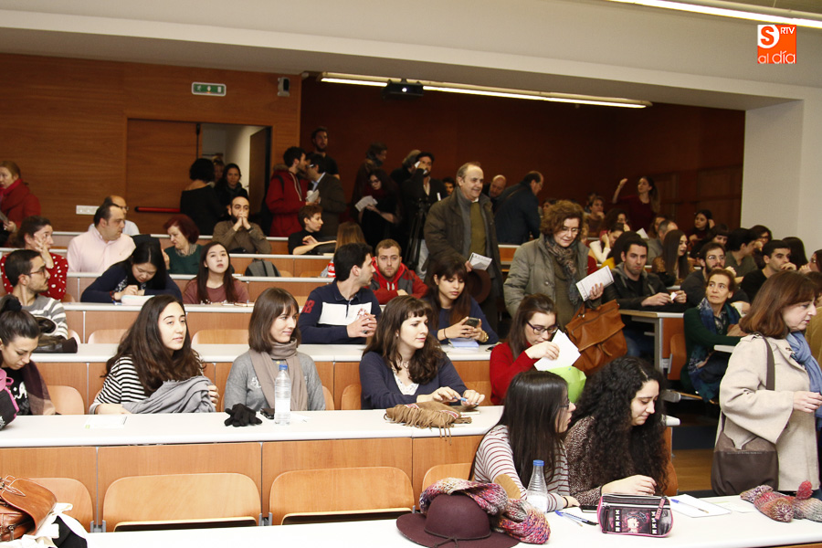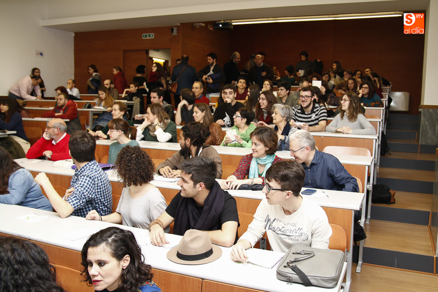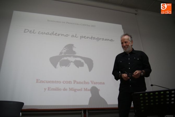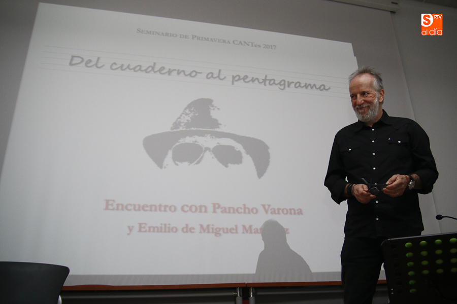El proyecto de investigación 'CANTes. Canción de autor en español', en el marco de las actividades programadas para su seminario permanente de primavera 2017, ha celebrado esta tarde encuentro con el letrista y músico Pancho Varona. El encuentro, que se ha desarrollado bajo el lema 'Del cuaderno al pentagrama', ha estado moderado por Emilio de Miguel, catedrático de Literatura Española de la Universidad de Salamanca y organizador del proyecto CANTes, y ha tenido lugar en el Aula de Facultad de Filología.