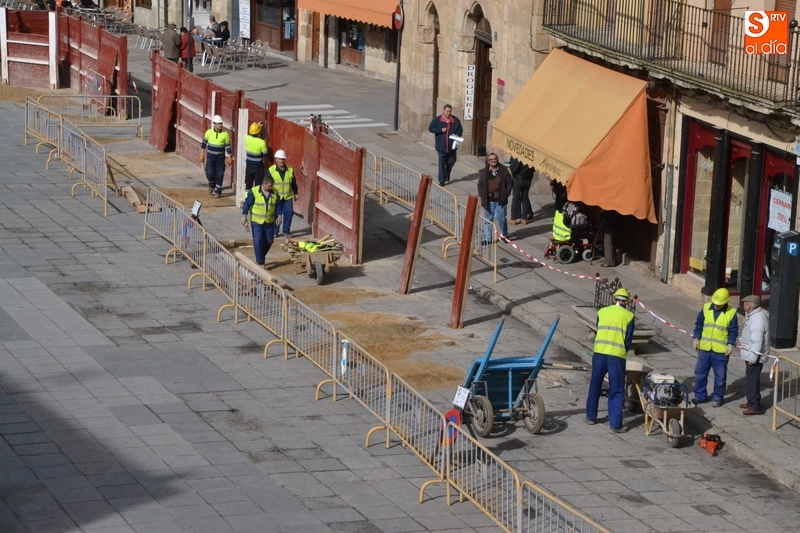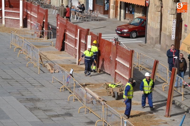 CIUDAD RODRIGO | Continúan los trabajos de colocación de las barreras del coso en la Plaza Mayor