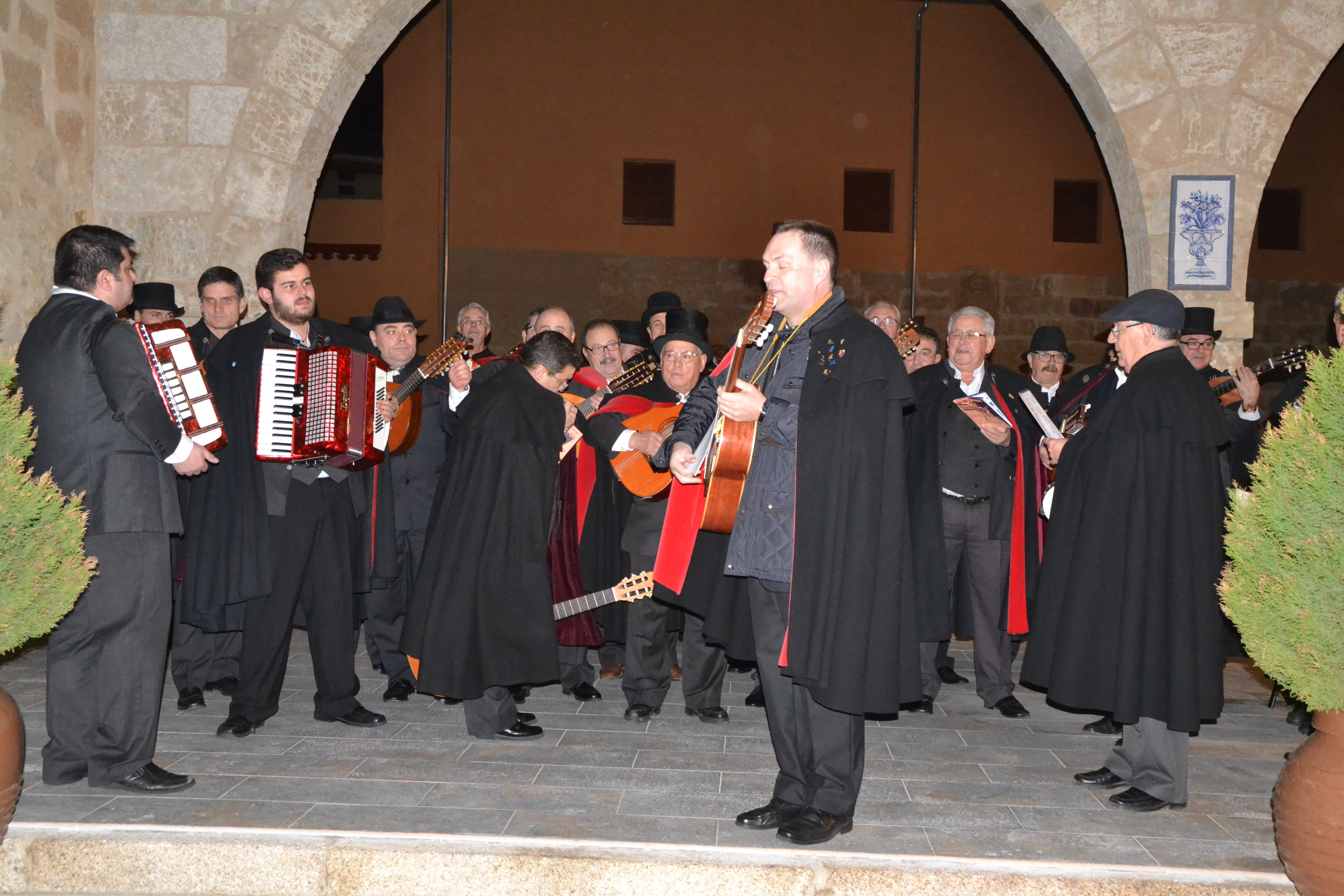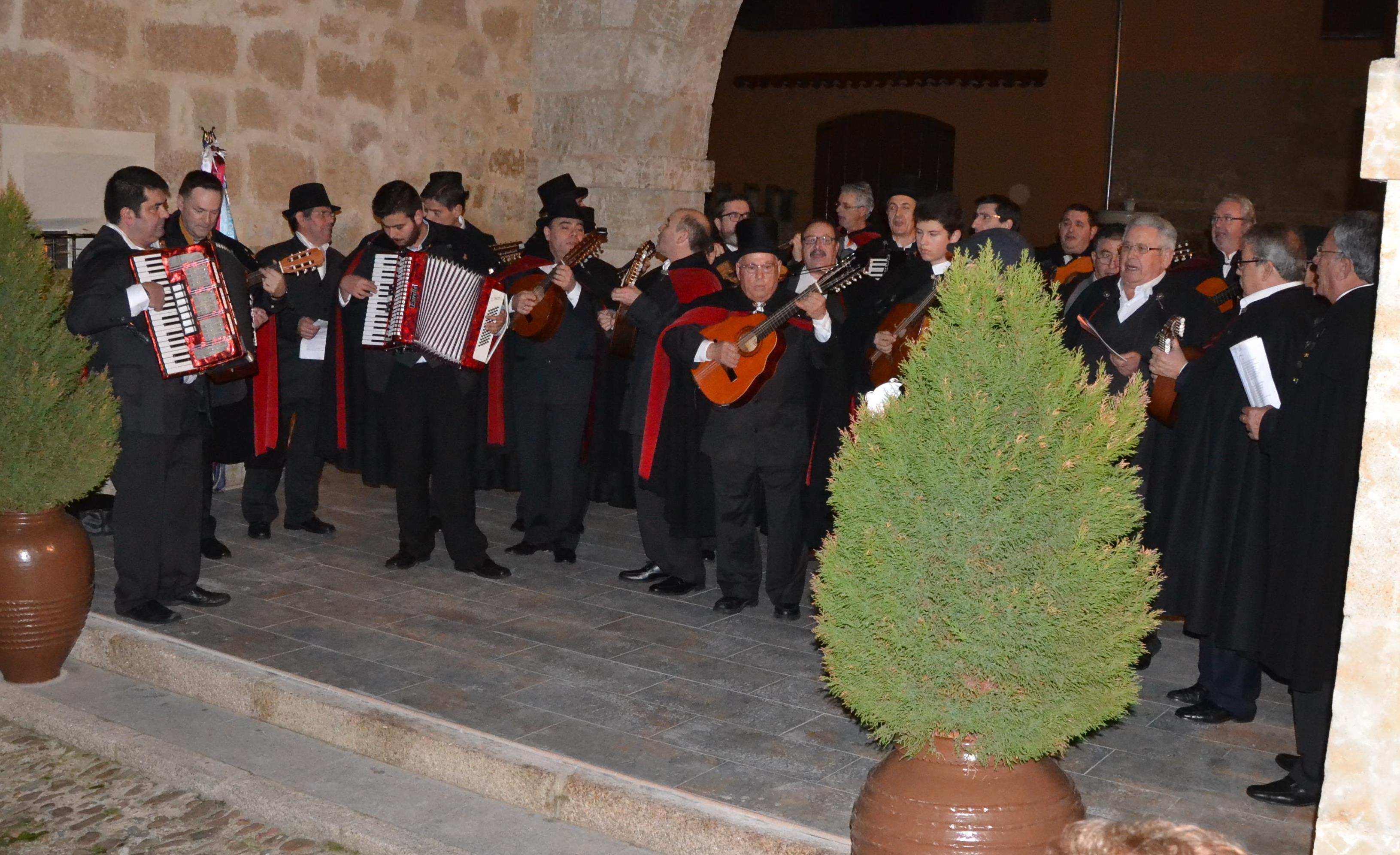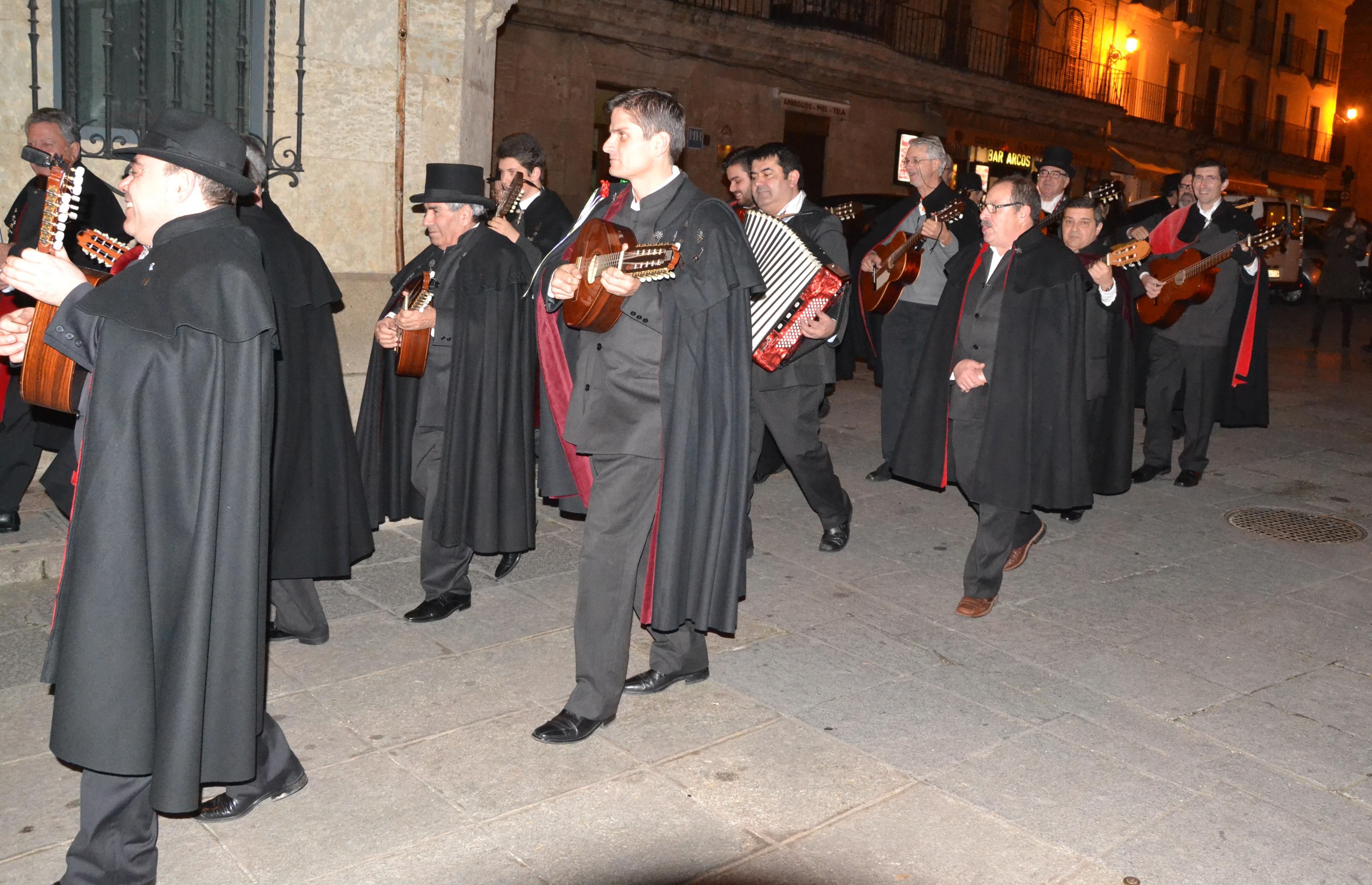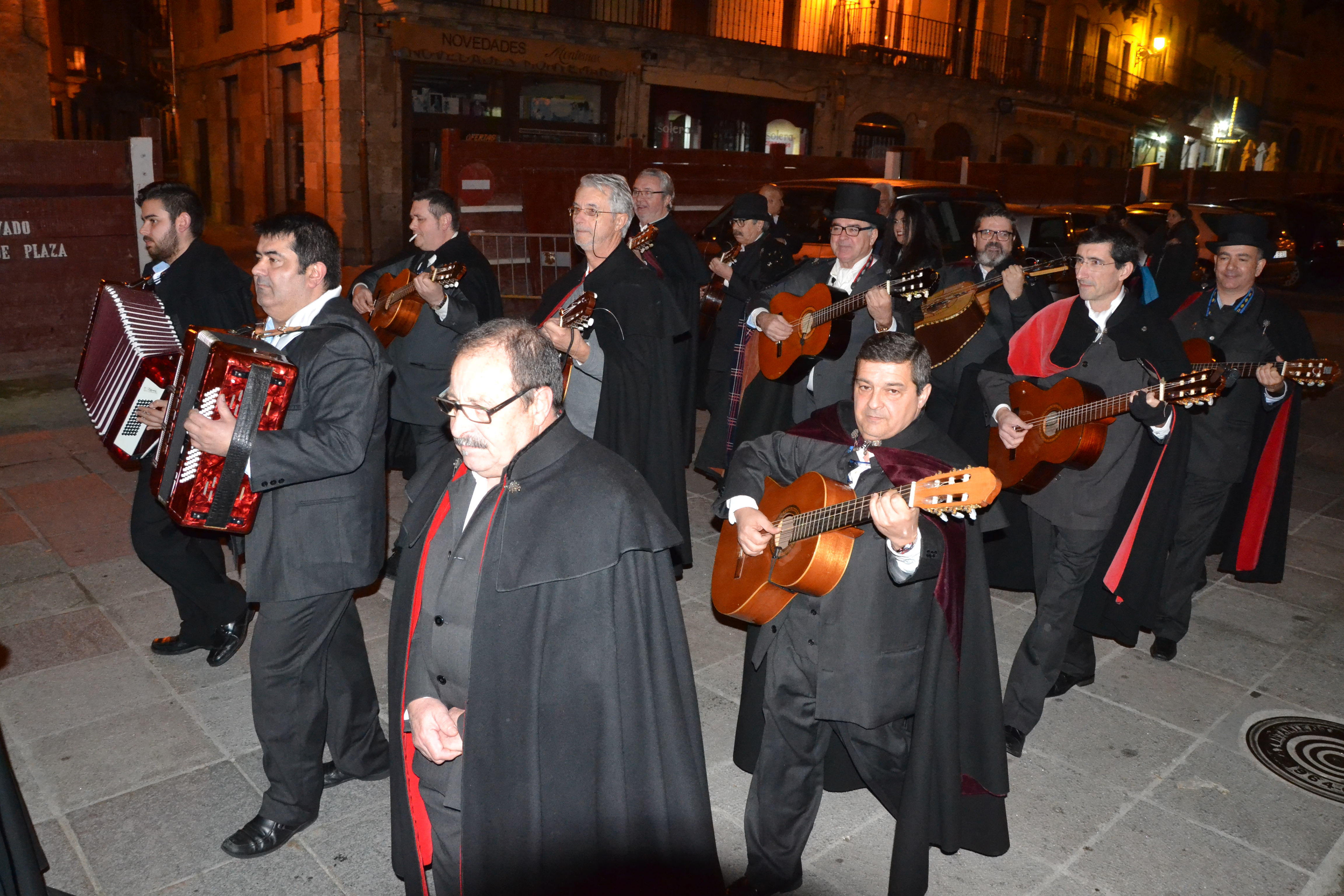 "Veinte o veinticinco, de los treinta sin pasar,/Ensayando noche y día, con creatividad:/el día 'pal trabajo', la noche 'pa rondar',/ser tuno lo es todo: es la mejor identidad./Capas y sombreros, guitarras bien 'templás',/laudes y bandurrias, panderos al azar./Siempre en Carnaval".