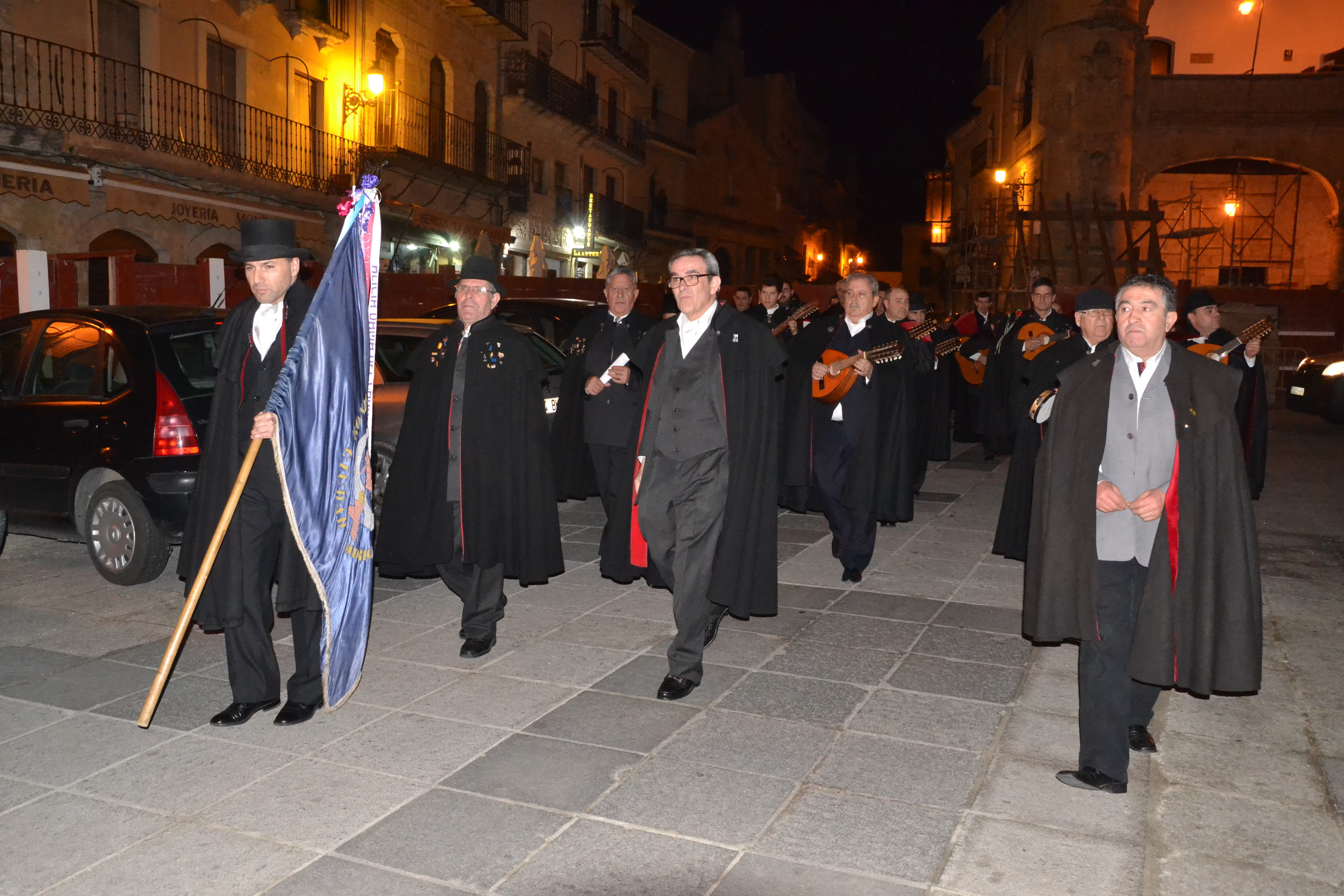 Una vez presentadas sus coplas en doble sesión en la jornada del miércoles en el Teatro Nuevo Fernando Arrabal, la Rondalla III Columnas inició en la noche del jueves su clásico ciclo de rondas por diversas instituciones, barrios o bares.