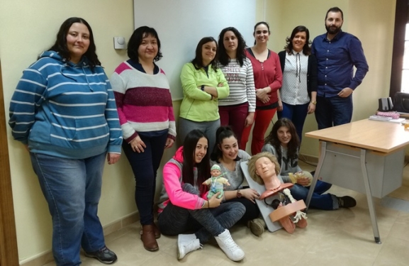 Durante los últimos días, las alumnas del Programa (que coordina Esteban Holgado e imparte Rocío Corchete), se han formado en primeros auxilios, para lo cual Cruz Roja Española ha prestado un muñeco para enseñar y practicar la Reanimación Cardiopulmonar. Desde el Programa muestran su agradecimiento a Cruz Roja por esta colaboración.