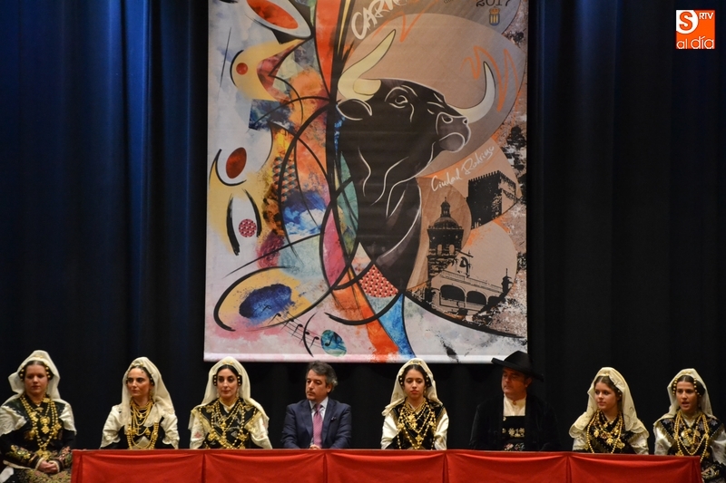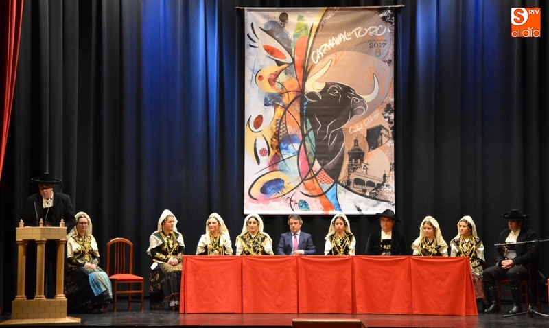 Bazaga inició su intervención hablando de Carnavales, apuntando que muchas citas del mundo tienen "música y máscaras", pero que el Carnaval del Toro es "único para gente única", ya que tiene "al toro, el arrojo y la valentía".