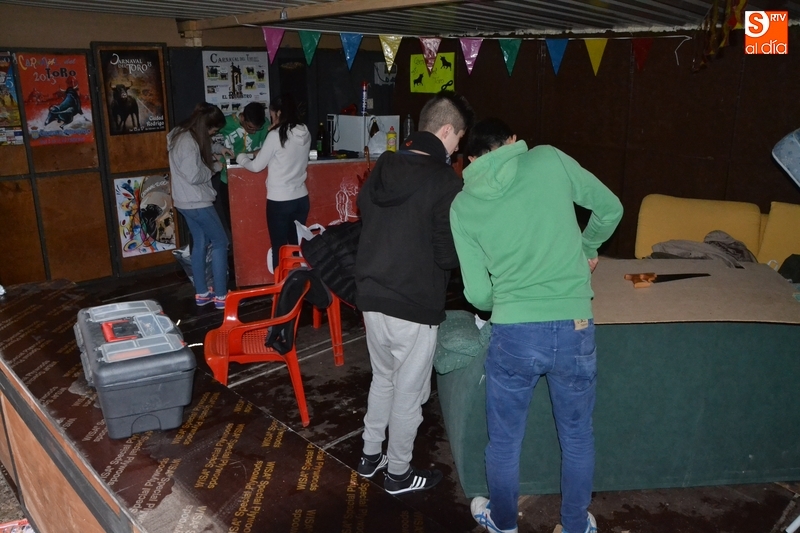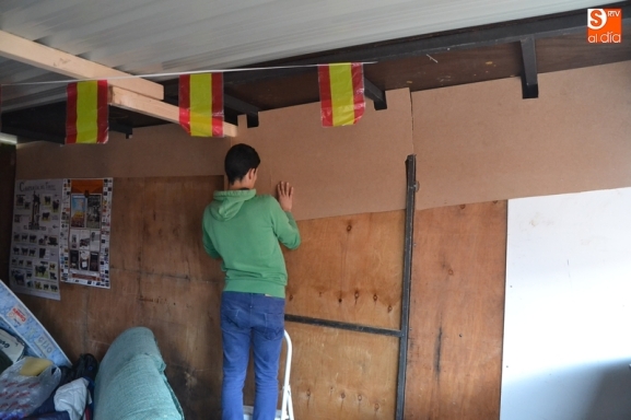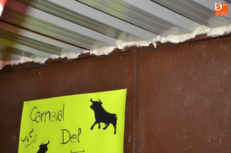 Asimismo, hay quejas por la separación entre caseta y caseta (son contiguas), sin llegar a estar rematadas incluso las separaciones. Precisamente, en la tarde sabatina al menos en una de las peñas se habían puesto manos a la obra para intentar paliar estas deficiencias, rellenando con espuma los huecos que hay entre las paredes y el techo.