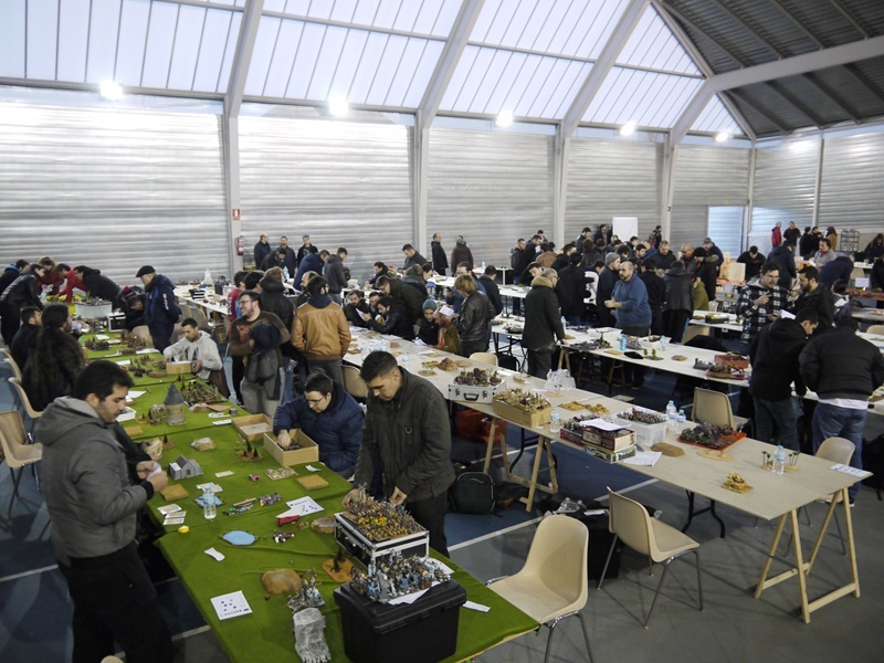 Durante este fin de semana, la pista de tenis cubierta está acogiendo un gran torneo por equipos del sistema de juego "Novena Era" (batallas medievales fantásticas, basado en Warhammer Fantasy Battles). El domingo, además, habrá un torneo de X-Wing (basado en el universo de Star Wars). Al mismo tiempo se celebrarán exhibiciones de otros juegos, talleres y juegos de mesa para niños y jóvenes.