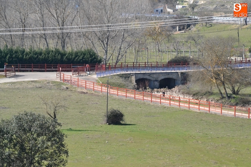 Respecto al tramo que se conserva del año pasado, la gran novedad es que se amplía su anchura. Viéndolo desde lo alto de la ladera, el mallazo de la parte izquierda se mantiene pero más retirado a la izquierda, y no llega hasta la Puentecilla, sino que acaba sirviendo de muro una pared situada en el inicio de la calleja de Valhondo. Mientras, por la parte derecha, se ha colocado mucho más retrasada una hilera de agujas en vez del mallazo del año pasado.