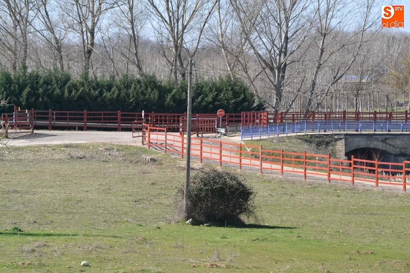 Así es en detalle el tramo de campo del encierro a caballo   | Imagen 2Aunque se han colocado agujas de las 'oficiales', para evitar cualquier riesgo se hacia el público se ha instalado además justo en el inicio de la Puentecilla una nueva puerta de paso vertical para peatones, que impediría el paso de los astados por ahí, como pudo llegar a haber ocurrido el año pasado tras romperse el mallazo.