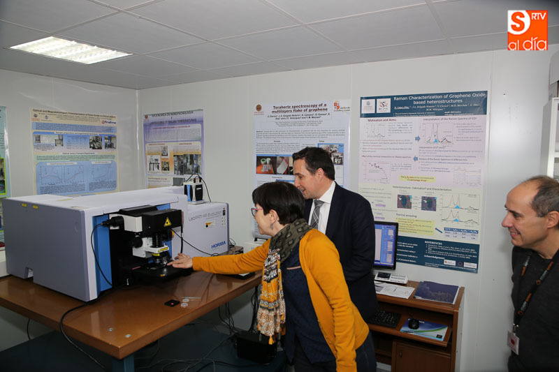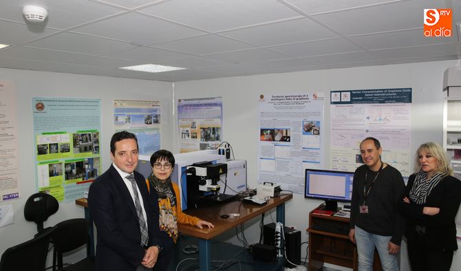 Acompañado por Julia Almeida, directora del Servicio Necleus de Apoyo a la Investigación, y los investigadores del Grupo de Nanotecnología Mercedes Velázquez y Enrique Díez, el vicerrector Juan Manuel Corchado ha dado a conocer las posibilidades y facilidades que estas dos herramientas ofrecen para investigación. Se trata del Espectómetro Micro-Raman LabRAm HR Evolution y el ICEP/RIE Plasma Pro Cobra 100, equipos que se integran en el Laboratorio de Nanoeléctrica y Nanomateriales-NANOLAB de la Universidad de Salamanca y que estarán a disposición "de aquellos grupos de investigación interesados en su uso para el desarrollo de sus estudios", ha explicado el vicerrector.