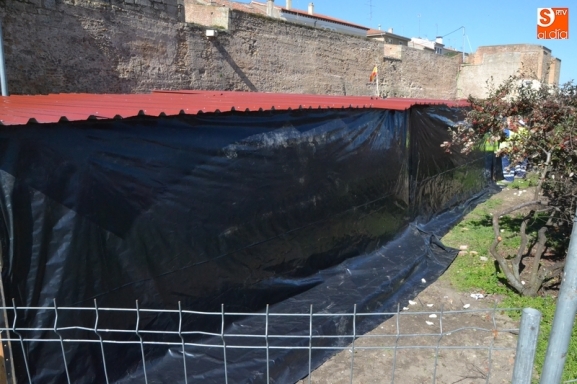 CIUDAD RODRIGO | Se han colocado unas lonas protectoras en la parte trasera de las casetas