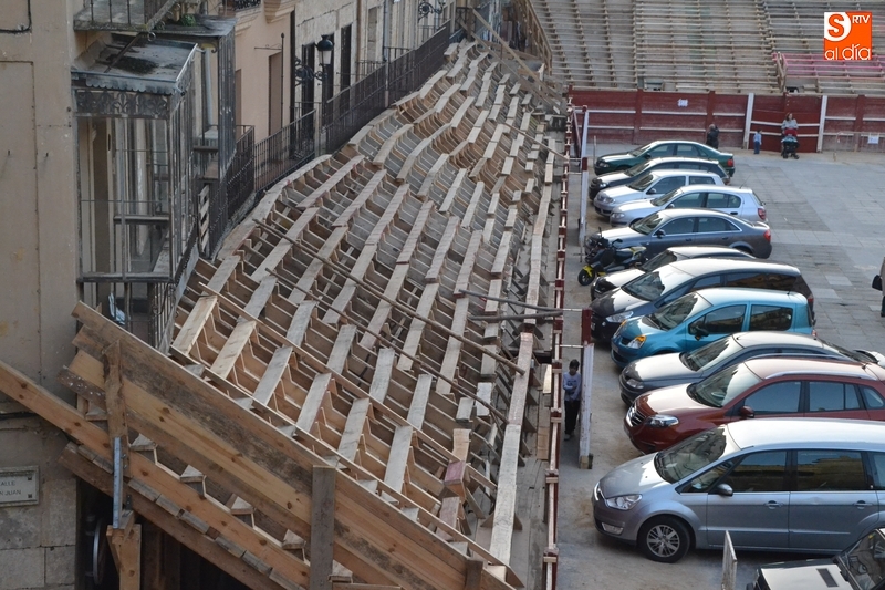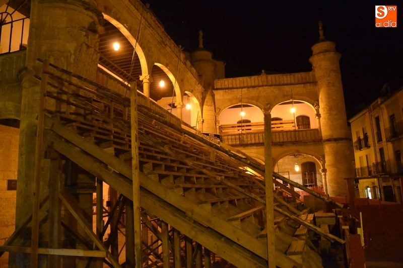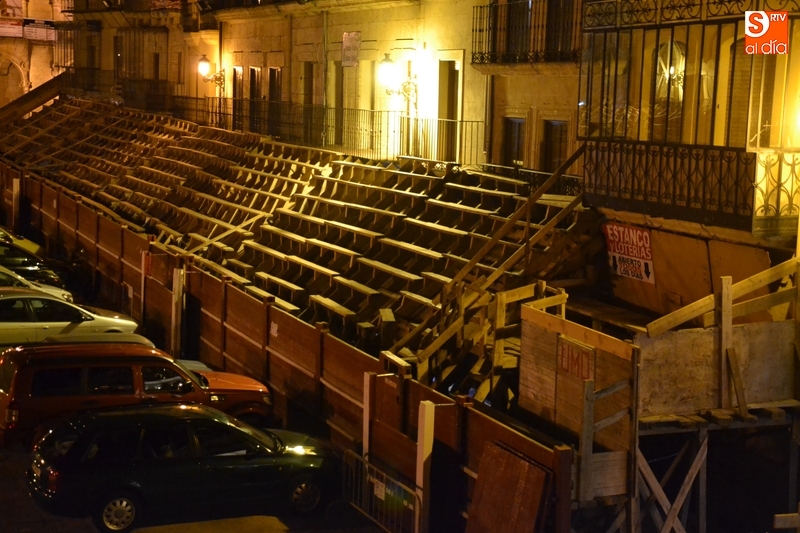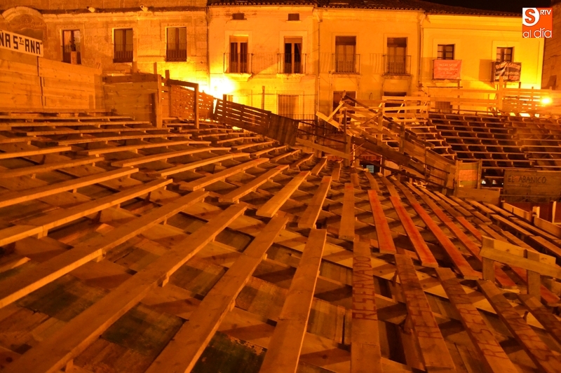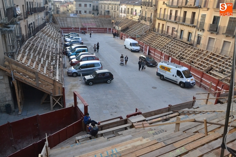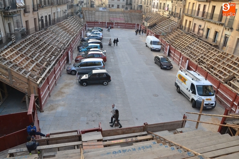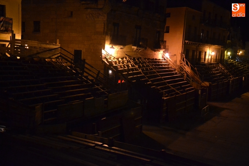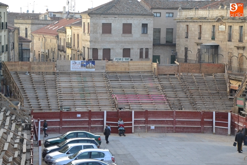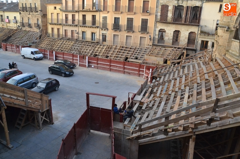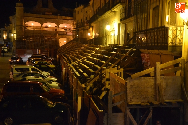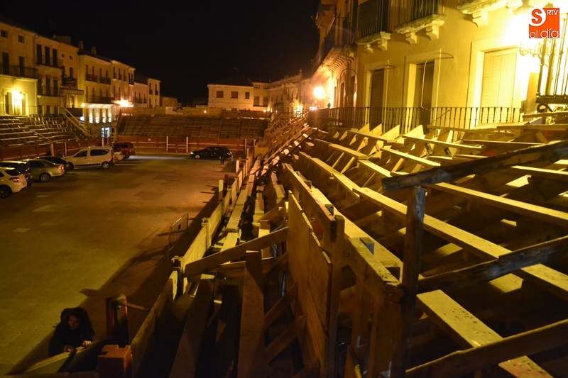 La Plaza Mayor de Ciudad Rodrigo está viviendo a la hora de publicarse esta información sus últimas 'horas de calma' antes de que todo se empiece a acelerar a partir de la mañana del jueves, momento en que se echará la arena en el suelo del ágora para culminar la construcción del coso taurino.